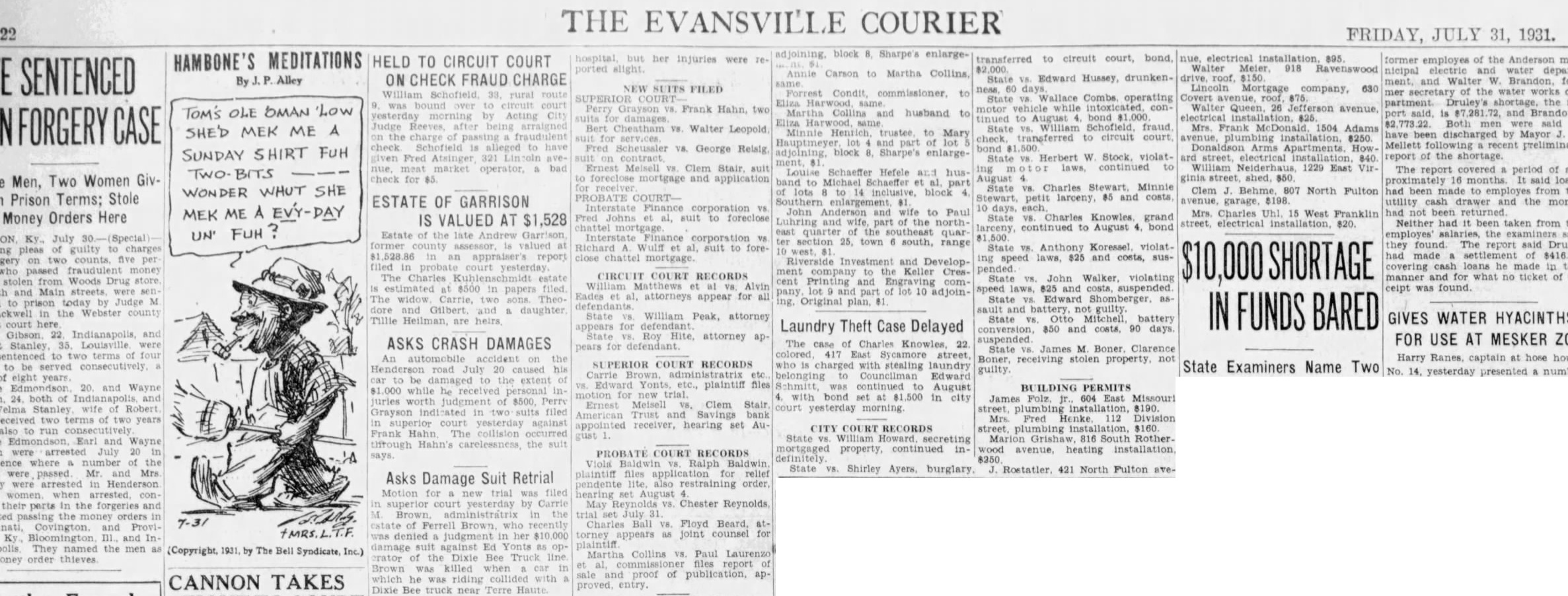 Article from Evansville Courier and Press, July 31, 1931