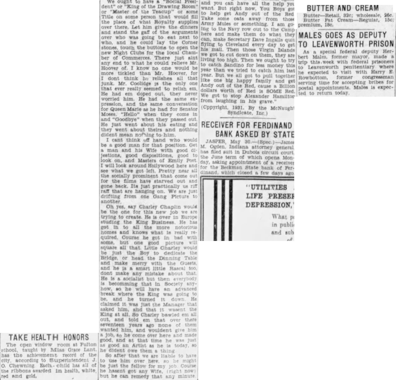 We ought to have "Social President" Room' the fill the place of supplies over there. Let him the dinners do they Cleveland day his those Islands got they are less than we But all together like one big and get Andy out the dollars worth Red is SOME We got stop Hamilton and stand the gaff of the arguments over who was going to eat next to and he lay the Corner the open new Night for the local ber There just aint end to what would tickled than Mr. for dont relishes all that Mr. Coolidge is the only one that He had em worried He had the laughing his grave the had By the McNaught for Queen for Senator Syndicate, "Hello" when they come and "Goodbye" when out He just about RECEIVER FOR FERDINAND they nothing to BANK ASKED BY STATE cant think off hand would JASPER May good that Get attorney general man his Wife with good filed suit dispositions, the June term of which opens Mon Masters of Post receiver here for Beckman State bank of Ferwhat we got left. Pretty near closed few that for the films have starved out and back. Its just practically us raff are hanging are just drifting from one Gang Picture another Oh say Charley Chaplin this job trying create. Europe studing the King Business He has got all the more homes what really quired. Course in MALES GOES AS DEPUTY TO LEAVENWORTH PRISON deputy Hermade trip this federal prisoners where expected Harry E Rowbottom, former serving for bribes for postal Males is expected to return but square all that Charley just Boy dedicate the Bridge, head the Dinning and make merry the Guests and smart little Rascal too make mistake about that He but anyhow have an break King was going and he turned claimed was just the Manager that asked that wasent the King So Charley and em years ago wanted and give him good and that time he just good an Artist dident owe thing TAKE HEALT HONORS The at Fulton by Lant has the the So are use over here might Chewning has just the fellow Course ribbons in health, white hasent any red and gold. but he can remedy that any minute