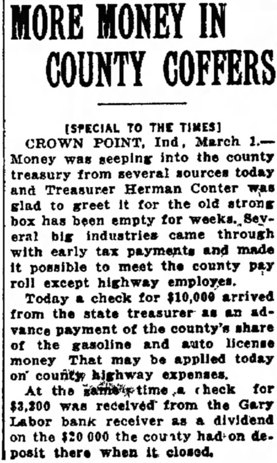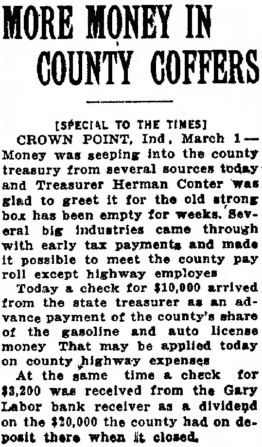 SECOND HOME LOAN GOES TO MAN The Lake loan loan Anders Hokanson, 5640 E. 5th place, Gary, Clinn Ellyson, manager the Lake county branch of Indiana Home Owners' Loan nounced today. He said the loan totaled $2,512.71, which $2,413.30 in federal home loan bonds the receiver the Miller State bank replace the first mortgage which been in since The of the loan was distributed $10.92 for delinquent Gary city taxes; for $21 for charges; to Attorney Fred Egan. Gary, for examining abstract: and for delinquent county taxes, making total outlay The home, bungalow, appraised by Joseph Wildermuth, of Gary, $3,500. The first was authorized yesterday for William Mulligan of Hobart. amounted to of which $849.24 in home loan bonds accepted by the receiver of the Gary Labor bank the first mortgage it held the property. The was in default 18 The of the loan in taexs, recording charges, similar items. Mr. Ellyson expects to authorize large number of loans during next few received 5,000 temporary for Of that number, 1,000 of the more distressed home owners been selected for immediate consideration.