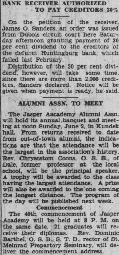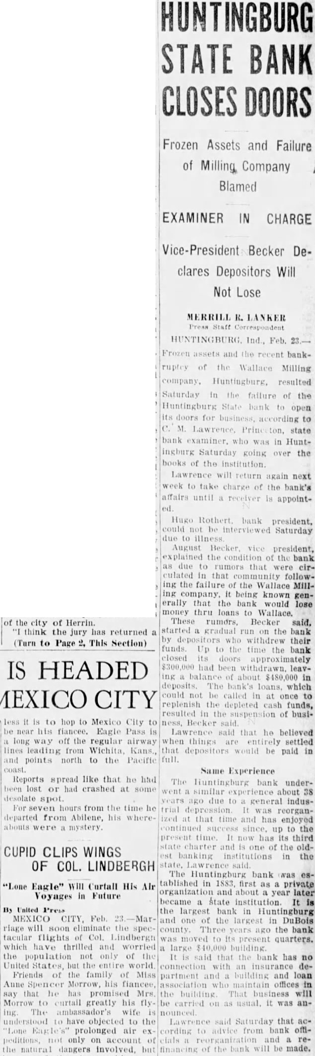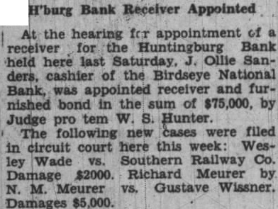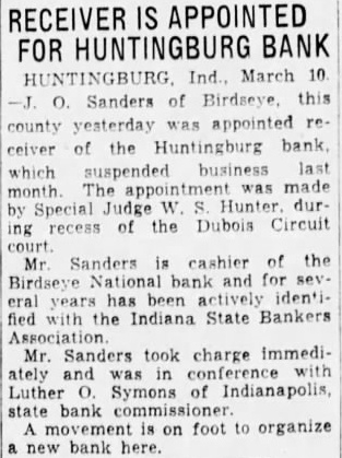 FAILURE OF BANK HUNTINGBURG