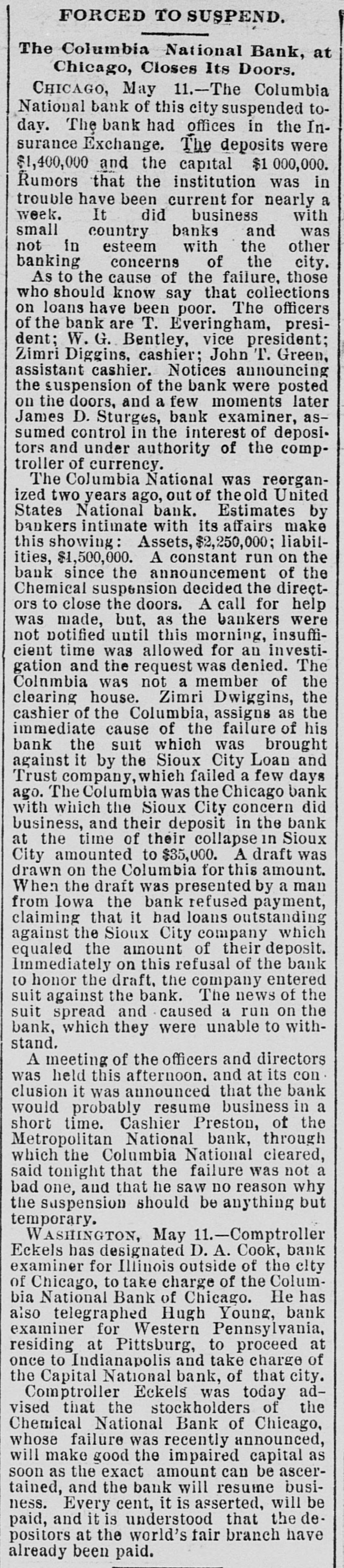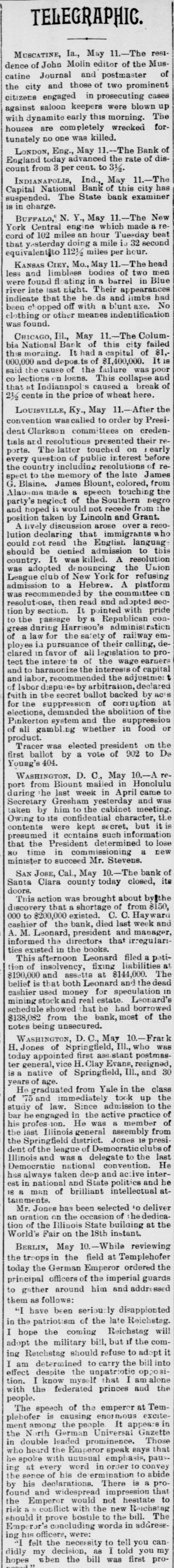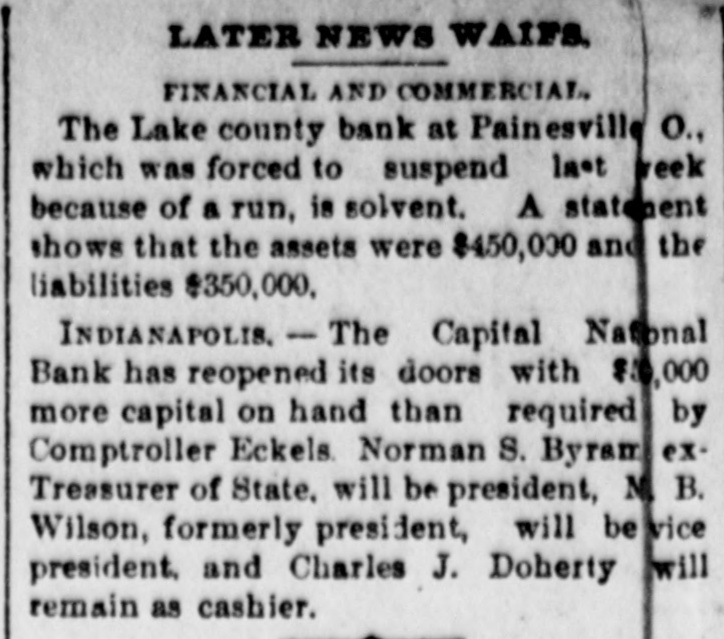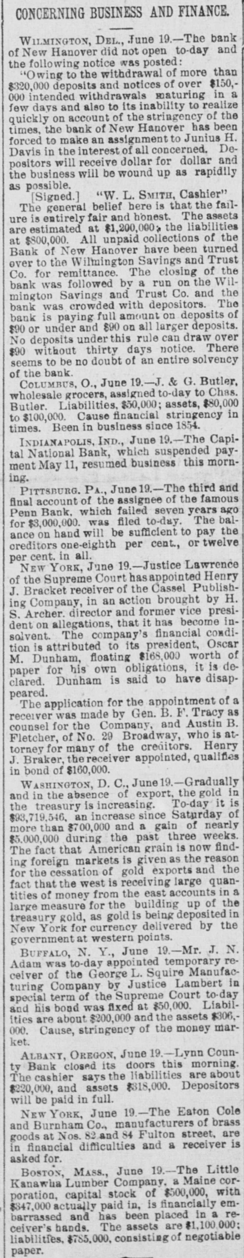 THE MONEY TRANSFERRED Otto Frenzel Goes to the Capital Bank and Demands Iron Hall Money. Receiver Failey Gives Him a Check on the Capital for $140,000-No Notification Had Been Given, but the Money WasThere. It is not very often that a man walks into a bank, without a moment's warning, in the busiest part of the day, and asks the paying-teller to cash a $140,000 check, but that is what was done at the Capital National Bank yesterday. The man with the check was Otto Frenzel, and the check was drawn by Receiver Failey, of the Iron Hall, and was for that order's funds which the Capital Bank held. Mr. Frenzel got the money in cold cash. It was three trips that the paying teller made to the big vault, and each time he would pile up greenback. in five-thousanddollar packages, on his arm like cord wood, and dump it on his desk. Mr. Frenzel was obliged to send for assistance to carry it to his bank, but it was gotten over without accident, and Receiver Failey has it where he can put his fingers on it. A Journal reporter called on President Wilson late last evening, and questioned him as to the occurrence. "The demand was wholly unexpected by us, but we were perfectly able to meet it," he said. I have talked to Mr. Failey but once since his appointment, and that was immediately after it. He said then that he should want to transfer the money some time, but that he could not tell how soon, and that he would letme know. We have had no word since, but have thought it best to be prepared." Wasn't it a very unusual proceeding, Mr. Wilson?" was asked. "Well. yes," and the banker smiled cautionsly. "It wasn't just exactly business courtesy, was it?" "No; I shouldn't have asked them for such a sum without first sending them word. and asking them if it were convenient for them to pay it, and I don't believe one banker in ten would have done it." "Would they have closed you up. if you hadn't happened to have the money?" "I've no doubt of it." Mr. Wilson went on to say that he was at the telier's window when Mr. Frenzel called for the money. and that he was of the opinion that Mr. Frenzel was considerably surprised when the money was counted out to him. He had no explanation to offer for such an action on the part of the Frenzel bank. but had all the appearances of a man well pleased with himself for having defeated a scheme that might have worked some harm to him. When the conversation turned on generalities he made the remark that it was very peculiar how John Frenzel tried to ride rough-shod over everyone, and then said: "Well, he never will over me." in a tone that said as plain as words: "And he didn't do it to-day." It could not be learned last night whether any of the Iron Hall's funds had been drawn from any of the other banks or not, but it 18 believed that there has not. Attorney Hawkins was seen by a reporter and was informed of the withdrawal of the money from the Capital Bank. He refused to believe it, and it was not until he was told that the reporter had conversed with President Wilson about it he reluctantly admitted its truth. He then expressed the profoundest surprise that such a thing had been done. "I am sure that I bad no knowledge of it, and from a less authentic source should most positively refuse to believe it. As attorneys we have no control over Receiver Failey, and I can give no explanation of the affair."
