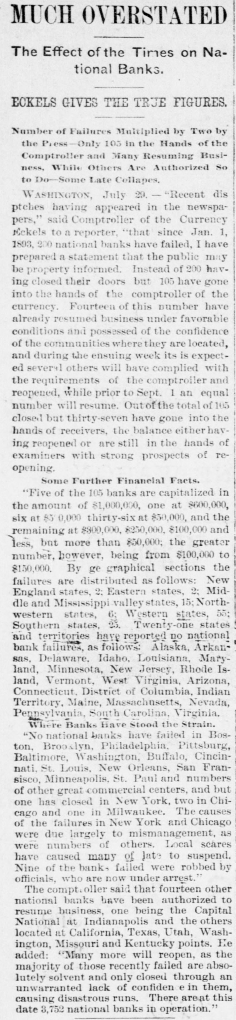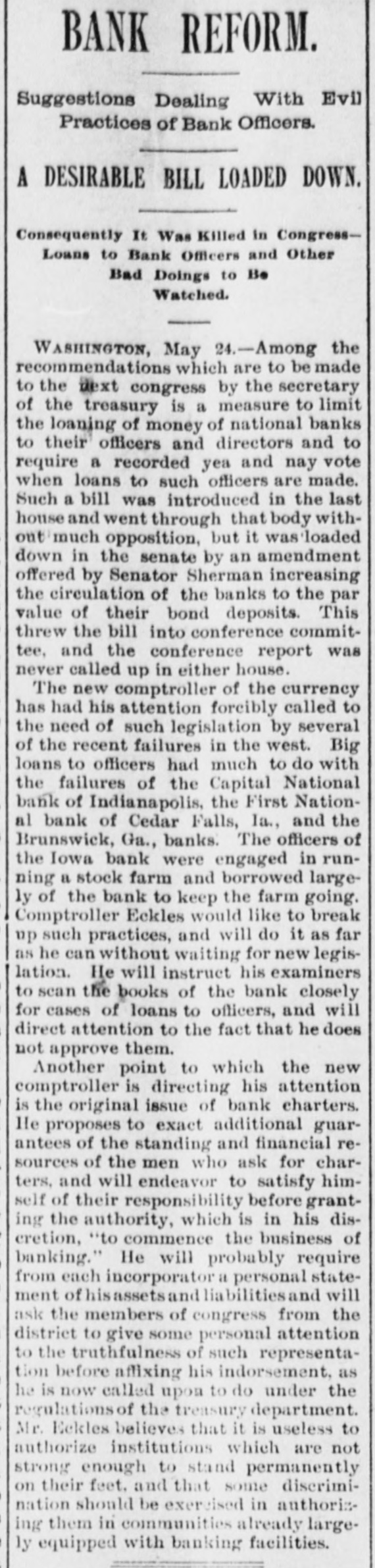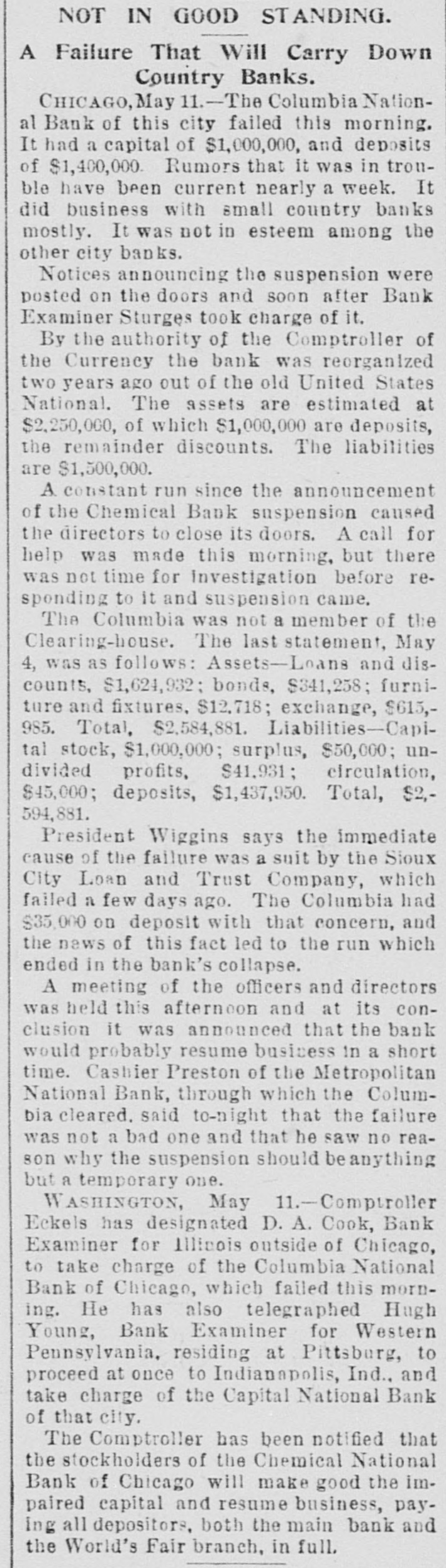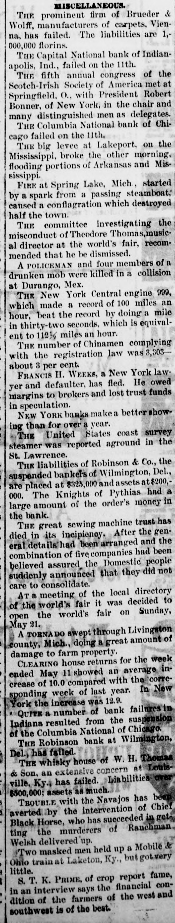 THE MONEY TRANSFERRED Otto Frenzel Goes to the Capital Bank and Demands Iron Hall Money. Receiver Failey Gives Him a Check on the Capital for $140,000-No Notification Had Been Given, but the Money WasThere. It is not very often that a man walks into a bank, without a moment's warning, in the busiest part of the day, and asks the paying-teller to cash a $140,000 check, but that is what was done at the Capital National Bank yesterday. The man with the check was Otto Frenzel, and the check was drawn by Receiver Failey, of the Iron Hall, and was for that order's funds which the Capital Bank held. Mr. Frenzel got the money in cold cash. It was three trips that the paying teller made to the big vault, and each time he would pile up greenback. in five-thousanddollar packages, on his arm like cord wood, and dump it on his desk. Mr. Frenzel was obliged to send for assistance to carry it to his bank, but it was gotten over without accident, and Receiver Failey has it where he can put his fingers on it. A Journal reporter called on President Wilson late last evening, and questioned him as to the occurrence. "The demand was wholly unexpected by us, but we were perfectly able to meet it," he said. I have talked to Mr. Failey but once since his appointment, and that was immediately after it. He said then that he should want to transfer the money some time, but that he could not tell how soon, and that he would letme know. We have had no word since, but have thought it best to be prepared." Wasn't it a very unusual proceeding, Mr. Wilson?" was asked. "Well. yes," and the banker smiled cautionsly. "It wasn't just exactly business courtesy, was it?" "No; I shouldn't have asked them for such a sum without first sending them word. and asking them if it were convenient for them to pay it, and I don't believe one banker in ten would have done it." "Would they have closed you up. if you hadn't happened to have the money?" "I've no doubt of it." Mr. Wilson went on to say that he was at the telier's window when Mr. Frenzel called for the money. and that he was of the opinion that Mr. Frenzel was considerably surprised when the money was counted out to him. He had no explanation to offer for such an action on the part of the Frenzel bank. but had all the appearances of a man well pleased with himself for having defeated a scheme that might have worked some harm to him. When the conversation turned on generalities he made the remark that it was very peculiar how John Frenzel tried to ride rough-shod over everyone, and then said: "Well, he never will over me." in a tone that said as plain as words: "And he didn't do it to-day." It could not be learned last night whether any of the Iron Hall's funds had been drawn from any of the other banks or not, but it 18 believed that there has not. Attorney Hawkins was seen by a reporter and was informed of the withdrawal of the money from the Capital Bank. He refused to believe it, and it was not until he was told that the reporter had conversed with President Wilson about it he reluctantly admitted its truth. He then expressed the profoundest surprise that such a thing had been done. "I am sure that I bad no knowledge of it, and from a less authentic source should most positively refuse to believe it. As attorneys we have no control over Receiver Failey, and I can give no explanation of the affair."