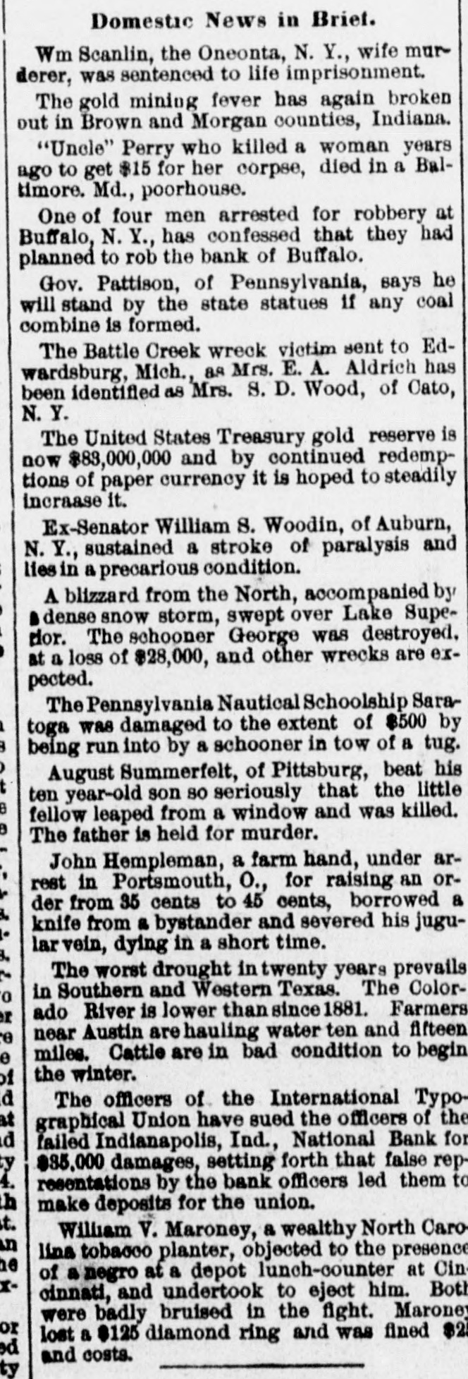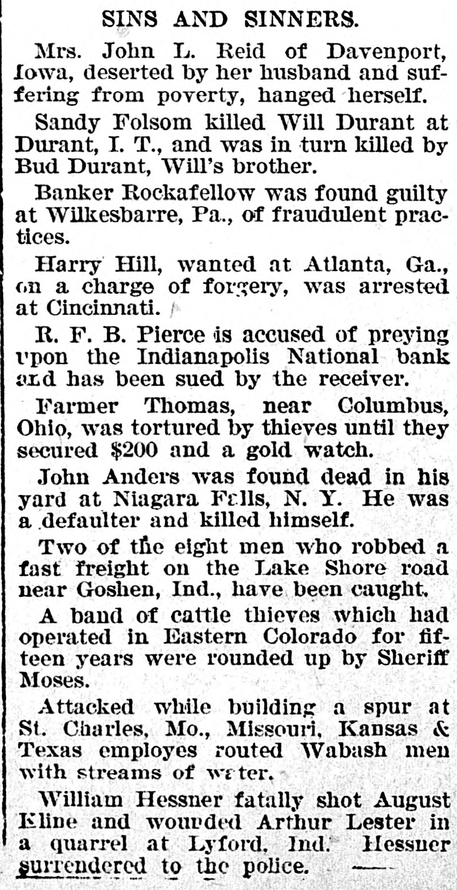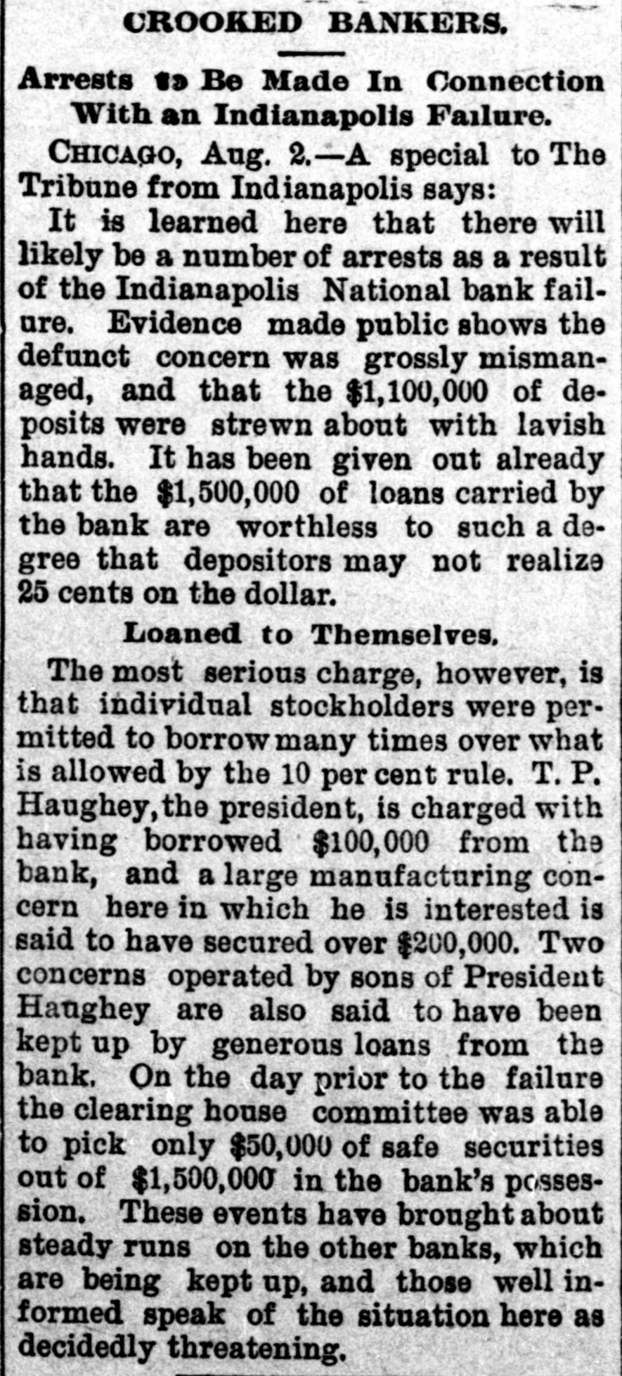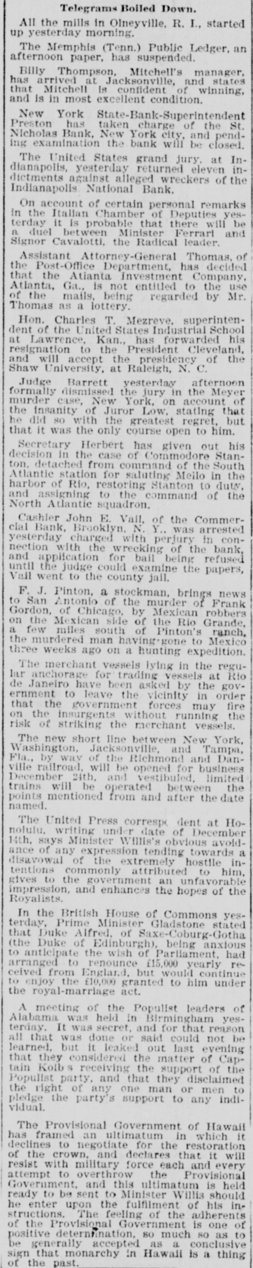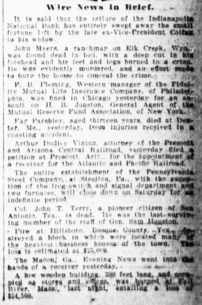 New York Market. NEW YORK, July 25.-The critics had another jubilee today and the result of their work is a loss all along the line of fro one to six points. The presence of a larger numbers of brokers than usual at the Winsor last evening, thei ports of gold, the higher prices for grain and the extraordinary shipments of cereals all (ell upon the market like so many drops of water on a deset Good news has no effect in these days. Only bad news is of avail, and today there was plenty of it. Whenever the wires were bot with declining quotati ns, they were telling of hot weather, decreasing earnings, discouraziug traffic and bank failures. The news of decreasir free gold in the treasury non $97,977,000 to $96,549,000 was followed bv sentences like these: "The Merchants National bank of Great Falls, Mont., has failed;" "The Taylor County bank of isconsin has failed, cashier sconded, assets $16,000." "The Merchants National bank. capital $500,000, and the Louisville Dep sit bank, capital $300,000, of Louisville, have closed their doors." "The Wi-consin Marine and Fire Insurance company. capital $500,000, has failed." "The Bank of Commerce and the Indianapolis Notional bank of Indianapolis are in trouble." "All the banks of Mil waukee are r eported to have closed tweir doors until aft. r the financial troubles blow over." One after another such dispaches were delivered to the stock traders and price S acted accordingly. There seemed to be no bottom to values. Even the critics tumbled over each other in their anxiety to sell. The wise ones shook their heads in vain. President Rembart of the Atchison sent word that the outlook for his road was favorable. The loss of silver freight would no effect on it and the corn crop promised to be phenomenal. If let alone le predicted that a similar management to shat of the last five years would resule successfully. He forgot to note that the corn crop will not be out of danger for six mon ns and predictions on Bit are quite useless. Nor has the management of Atchison for the last five years been such as to Precommend It as a goo I precedent for the future. Erie was much talked of. The financial committee met last evening and discussed measures for taking care of the floating debt. They say the road is earning a surplus above all the inter st charges, and they see no reason for the decline in its bonds. They can have no occasion to contemplate a receiversh ip even for protection. There WHS an unusual demand for money from the interior today. The banks scrutinized not only the character of borrowers, but of collateral. The market for commercial paper was almost at a standstill. London he-itated to buy because of the pending settlements tomorrow. Late in the day the "critics" renewed the r attacks and the grangers reached rie lowest prices yet recorded. Northwest dropped from 95 to 89 3/4, Burlington to 70 and Atchison to 13%. All were sellers. No one bought and tue declise seemed only stopped by sheer fatigue of the bears. The quotations: Last Sales at New York.