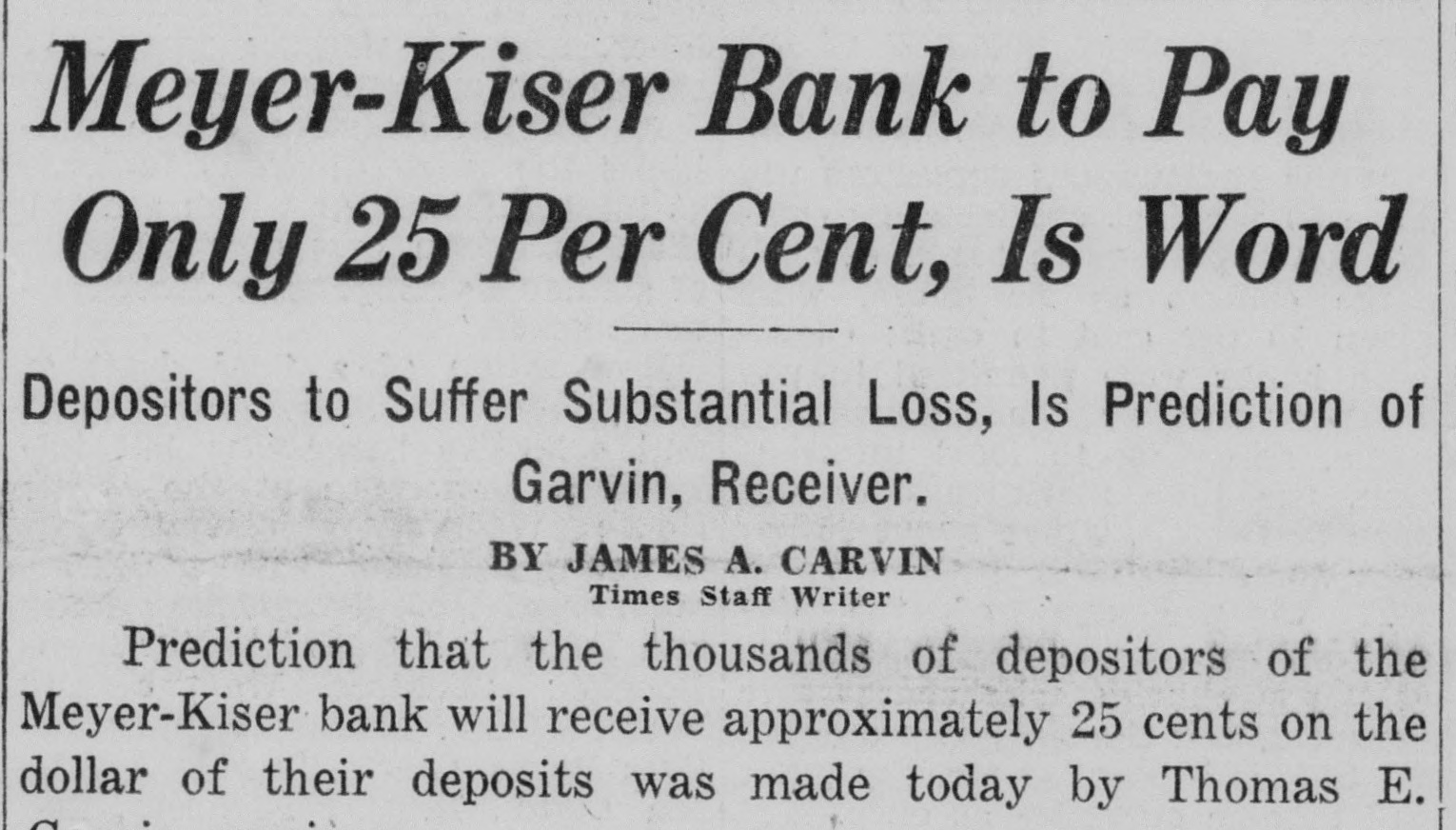 The superior court suit charges Ferdinand S. Meyer, bank official, on the day it closed, executed a quit claim deed giving his invalid mother, Florence S. Meyer, title to $30,000 worth of property.