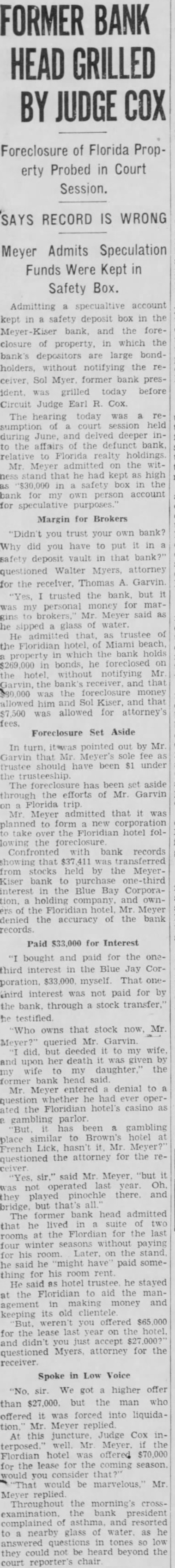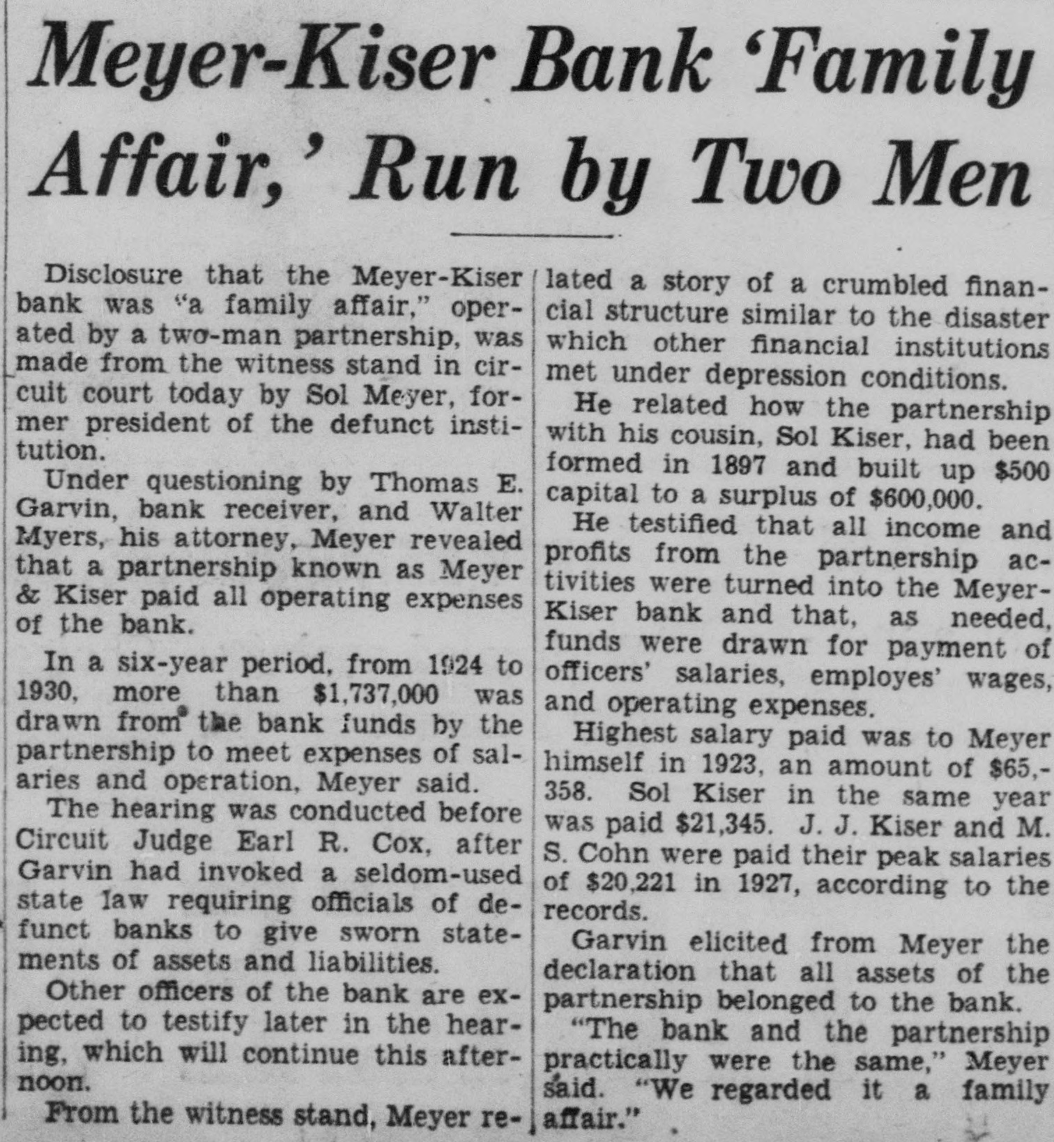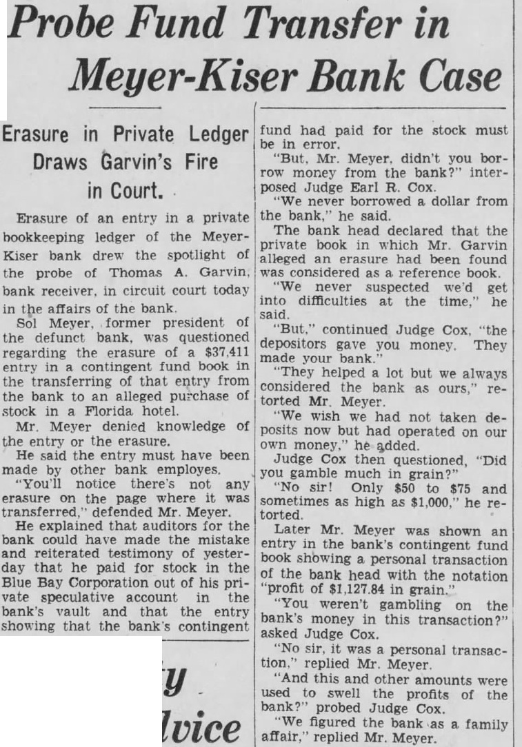 Stock liability of Sol Meyer, Ferdinand Meyer, and Florence Meyer amounts to $165,000 of this amount, the suit alleges.