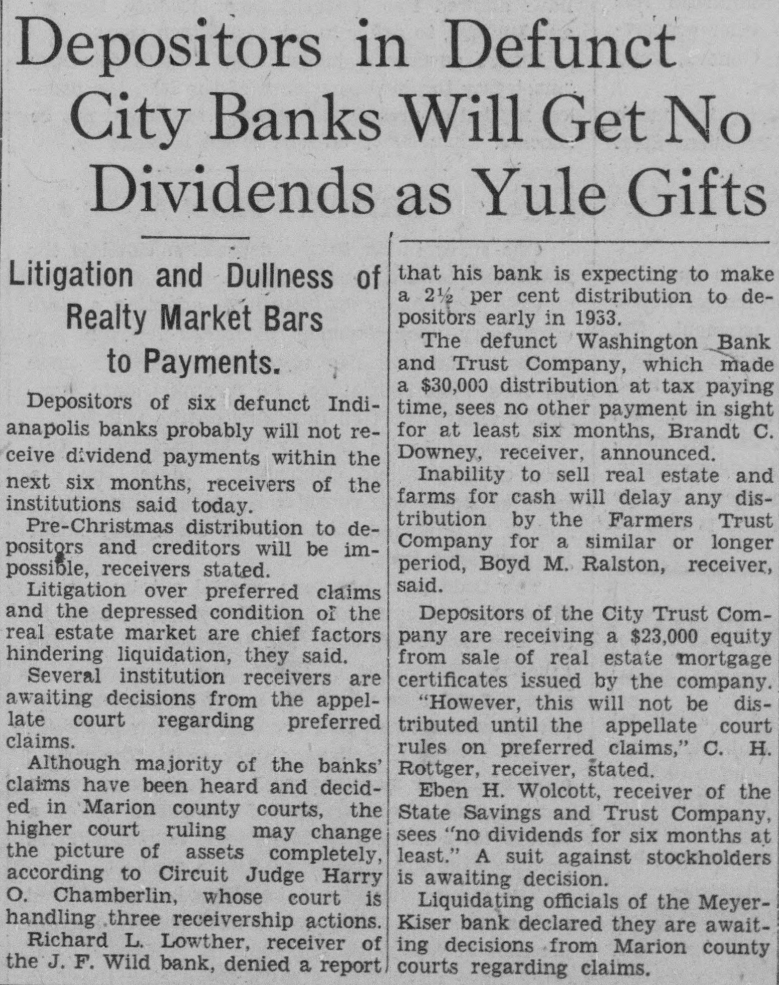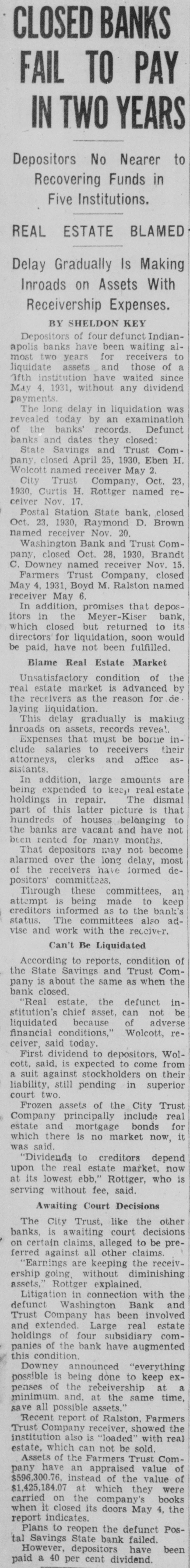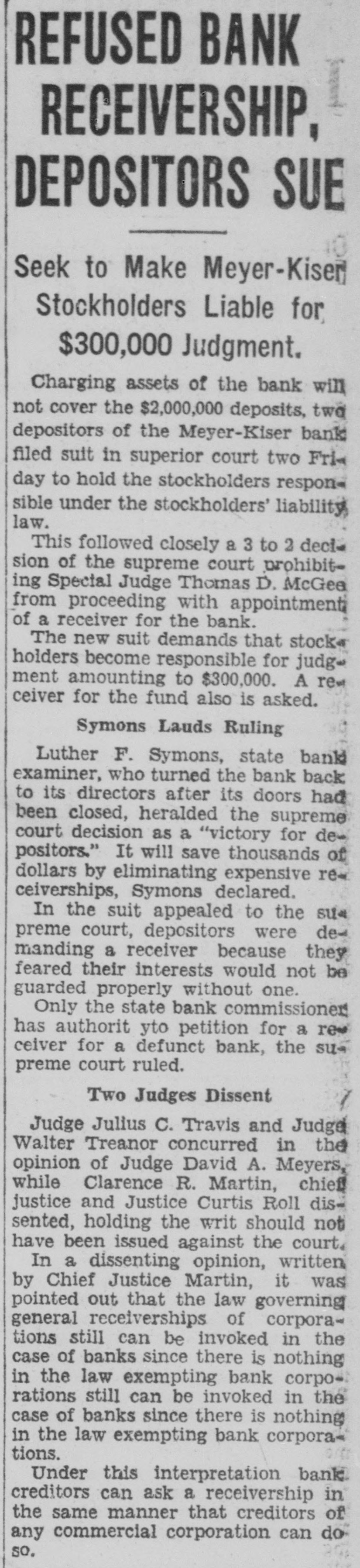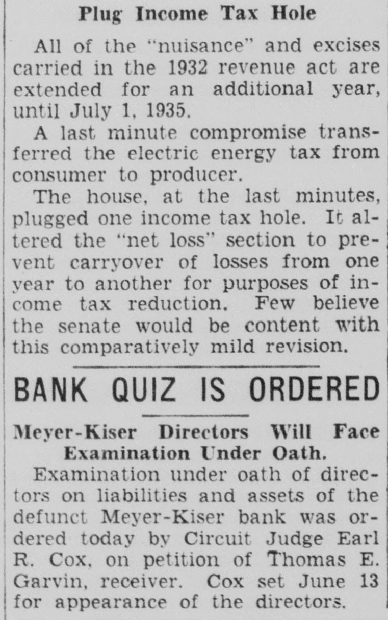 "Then you think the Meyer-Kiser bank still is solvent?" Miller asked.