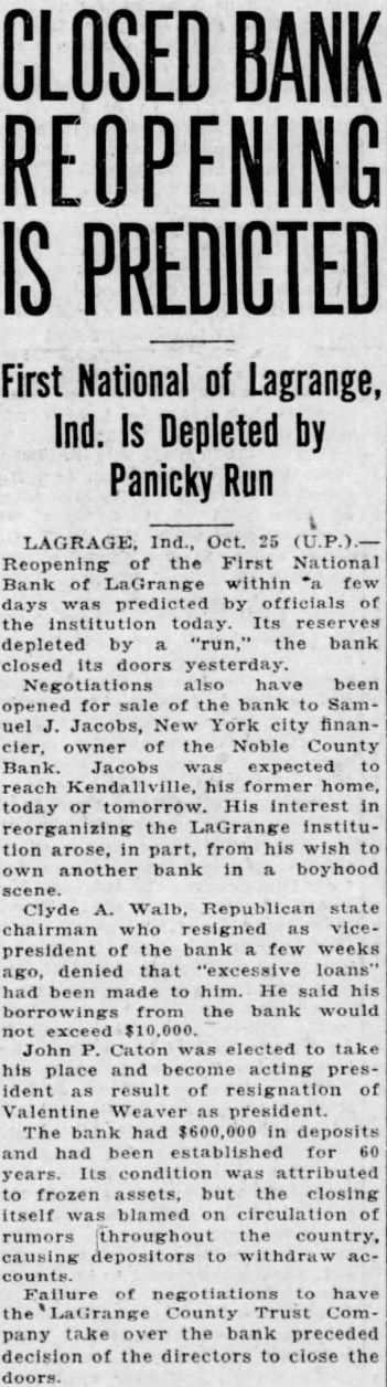 Scott Center met defeat here day night Pleasant Lake basket ball team. score, 12 to 60. Mrs. Byrl Bennett and daughter. Moberly. spent week with and Edgar Bennett Married. Sunilay, November 11. Rer. Edward Madaline Nicholls, of St. Joe Indiana, and Beecher Lemmon. They at home their friends at the late Sarah Jackson home east of town and Mrs. spent Sunde with Ethel Sunday in Fort Wayne Homer Weaver, of Fort Wayne, (ended the meeting for men the tabernacle session our Sunday schools held at the tabermorning at Mrs. Freeman Smith visiting at argis Mich. this week Aid speiety of Mount church have Thanksdinner nd home Peter Crowl on Only 25 cents for good the Young Peoples' day when Mr speak the Life. will be furnished by the crchestra under direction and Mrs. Sunday days with Mr. and Mrs Sunday at Lansing Mich. and Mrs. Harry and Mrs. Estle Landis, Mr. Howard Johnson were the and Luther lows at Union City, Mich., Sunday Shaffer speat the past few Indianapolis Miss of Winona spent the with her The Sunday orches. the the tab the church Sunday afterand the was greatly by the large Mira Barnes, of Milan Mich., and other here Mrs. Emerett Huffman colored quartet expected sing at tabernacle some night week. also men's chorus from Frank Wilcos is confined the home the result of being kicked by Meetings at the tabernacle were attended large crowds Sunday and the interest The begin at o'clock each ning. and Mrs. Waldo Hulwick of spent Sunday with Mr. and Rev Bright has wrecked the parsonage barn and is building double garage Anstett and Reba Swinehart were dinner of Mr and Mrs. Ralph Newman. near Orland Sun-