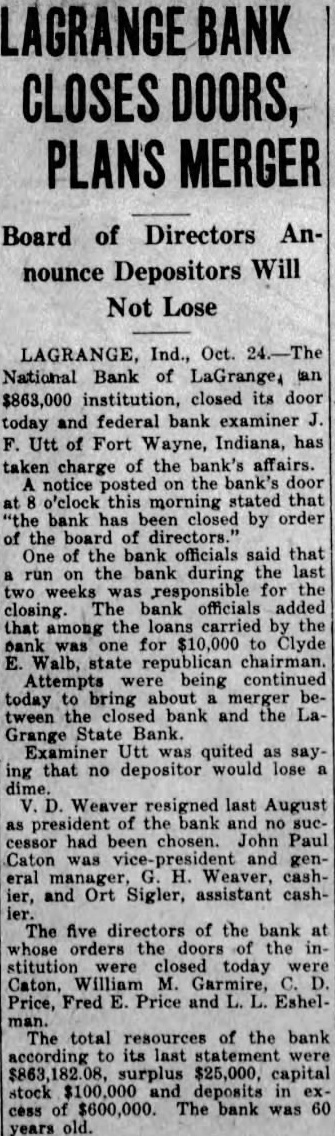 What Walb anything after the survey made him by Fenton, who frankly his size-up of the and especially of Foley, yet disclosed. That influence changed the minds various board this notorious case evident the record. In discussing the affairs of the which cializes in ditch drain work, regular finanfiled this office July that time affairs were reported "Along heard rumors LaGrange bank, of which had viceafter State Banking Examiner's Securities Weatherholt to LaGrange to these Stock Sale Halted