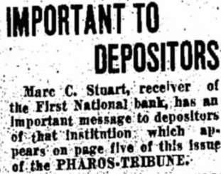 "We could have borrowed or rediscounted our customers' notes with the federal reserve bank had we felt that this step was necessary. But we did neither," John F. Brookmeyer, president of the First National bank informed the PHAROS-TRIBUNE this afternoon.