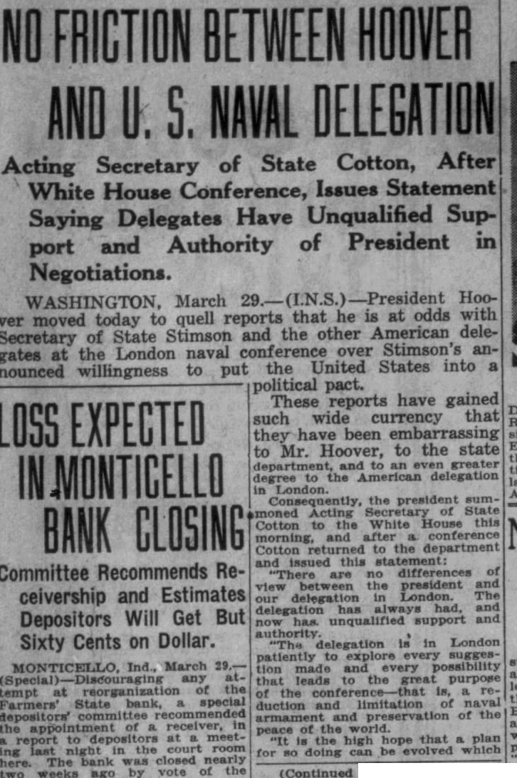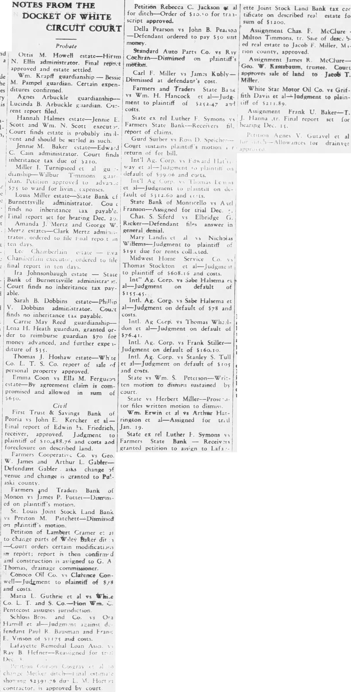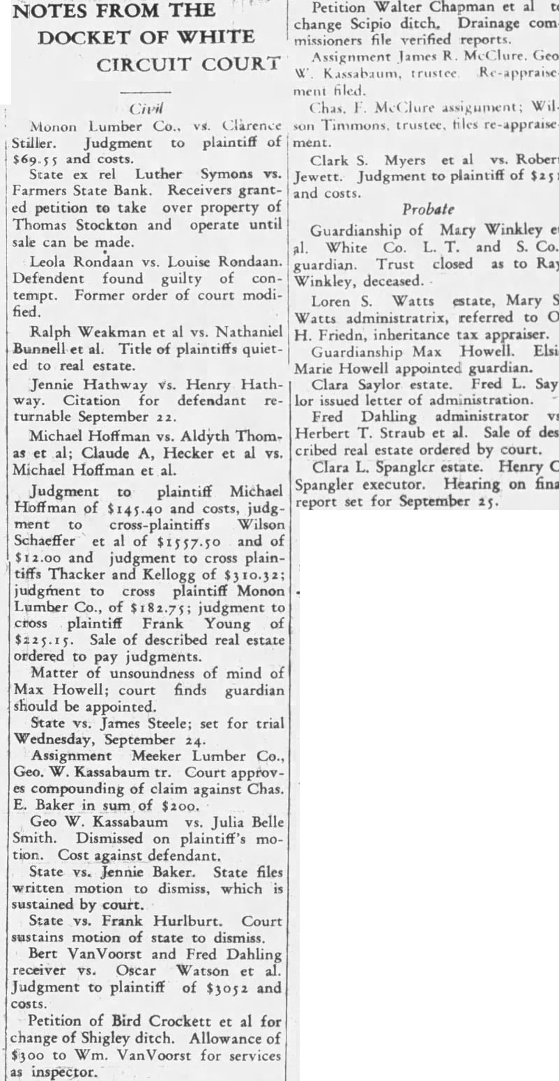 DEPOSITORS ASK DELAY IN NAMING BANK RECEIVER Seek Sufficient Time To Study Prospects of Reorganization. 150 ATTEND MEETING. A petition praying the White circuit court to hold in abeyance the appointment of a receiver for the Farmers State Bank for a time while the depositors considered the advisability of perfecting a reórgenization was signed by a large number of depositors of the bank, who held meeting in the basement of the library Friday evening. If it becomes necessary to appoint receiver, the petition continued, then the depositors would like to have a voice in selecting the person to be designated. T. J. Hanna, local attorney, a depositor and stockholder in the bank, acted as temporary chairman of the meeting by request. Dr. A. B. Cray was selected permanent chairman, and John A. Rothrock secretary. Captain William Guthrie made talk, in which he urged the depositors to stand together for the benefit of all. He said that he was not familiar with the details of the bank, and had no immediate solution to offer for the problem, but suggested that the proper course was for the depositors to study the situation carefully, and work out the plan which would be best both for themselves and the community at large. Charles Johnson said be would like to hear a report on the condition of the bank. Hanna replied that Mr. Fraser, the deputy state bank commissioner in charge of the local institution, completed his report Friday and had forwarded it to the department at Indianapolis. As soon as it had been checked over and o. k.ed there, Mr. Hanna stated, it would be available for public inspection, and he suggested that another meeting be held next week when Mr. Fraser could appear before the depositors and tell them what he knew regarding the bank's condition. Petition Presented At this point the petition was presented and read. Sam Young, formerly receiver for the National Bank. suggested that a definite time be set for the postponement of action by the court. He said that too much delay might give some one a chance to "get out from under.' After considerable discussion, a period of days was decided upon, which would bring the matter up for definite action by the court on March 3 1st. By that time, it is thought that the desirability and practicability of reorganization can be canvassed. Dr. Cray, in speaking at the meeting, pointed out that the interests of the depositors were identical. All of them, he said, were interested in getting 100 cents on every dollar they had put in the bank, if there was any way to work out the problem. He thought that a quick liquidation of the assets might result in material loses. His talk appeared to be well received. None of the officers of the bank attended the meeting, which was more or less in the nature of a preliminary to the business which is expected to come later. A committee probably will be appointed by the depositors to represent them in the future, and the probabilities are that another meeting will be held early next week, at which time Mr. Fraser will make a report. The interest of the depositors is indicated by the fact that 150 out of about 250 depositors of the bank were present last evening.