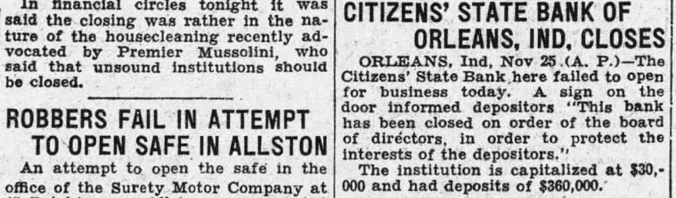 THREE BANKS ARE REOPENED Arkansas Situation Improves: Three Close in Tennessee. (By The Associated Press.) Develop ments in the banking, situation in the United States Tuesday included the closing of five institutions in various localities and the reopening of three. that had closed during the last Three Arkansas banks reported to the banking department they had reopened for business after having suspended payments for week With these reopenings, ten seventy banks in the state which closed or suspended within week have resumed Those resuming business during the day were the Bank of Ozan. the Bank of McNeil and the Bank of Stamps. Members of the Christmas club of the used American Exchange Trust company in Little Rock. Ark. will 50 per cent of their savings through plan agreed upon by three the largest stores. There are about 1.000 of the club. with appreximately $200,000 on, deposit. Three banks in Weakley county in Tennessee were closed dispatches from Dresden said The cashier of the Weakley County bank in Dresden reported it was closed to stop run. The Bank of Martin and the City State bank, both at Martin, closed earlier in the day In Indiana. the Citizens State bank at Orleans failed to open for business The institution is capitalized at $30 and has of In Mo. the First National bank was closed by its directors after run It was said withdrawals during the last few days had amounted to 000 Peoria dispatches sai Henry Denhart president of the defunct Denhart State bank at WashingIll offered his personal forof $120 000 to help overcome liabilities growing out of the several months