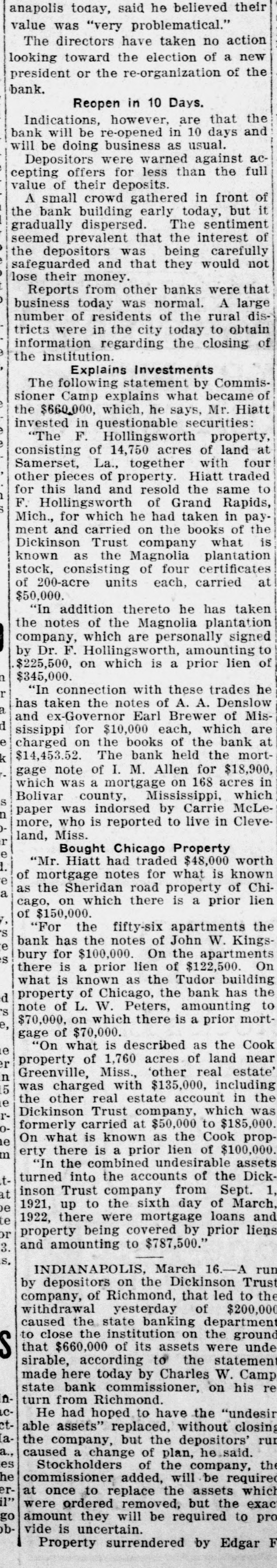 of the failure, and Mr. Hiatt to a friend