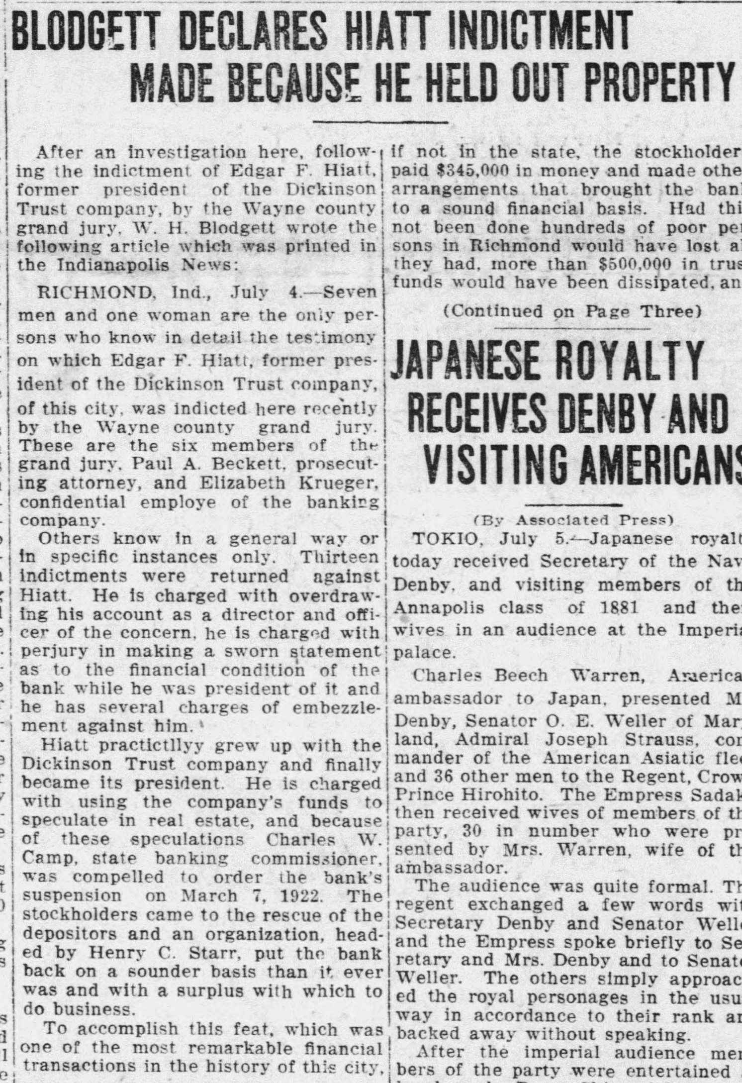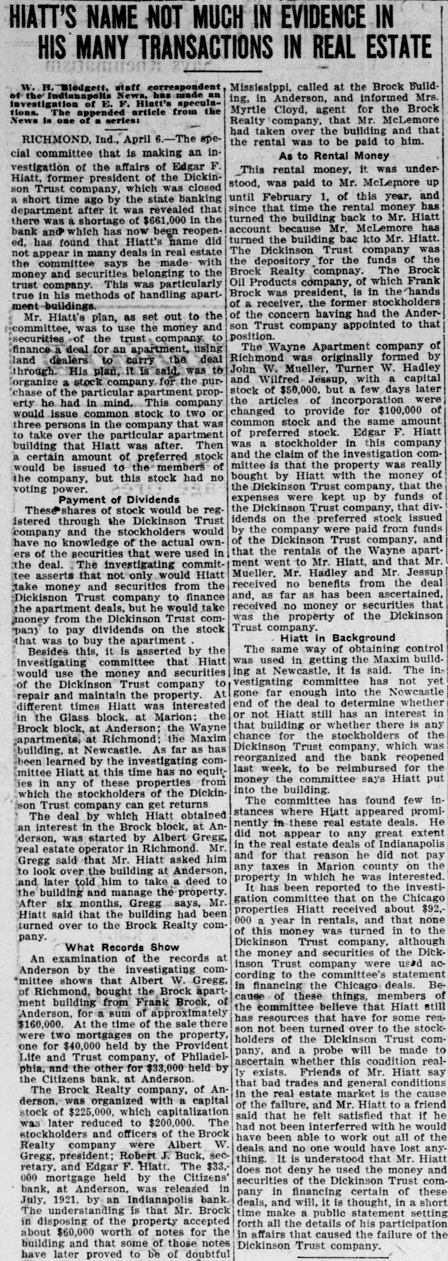 # HIATT'S NAME NOT MUCH IN EVIDENCE IN