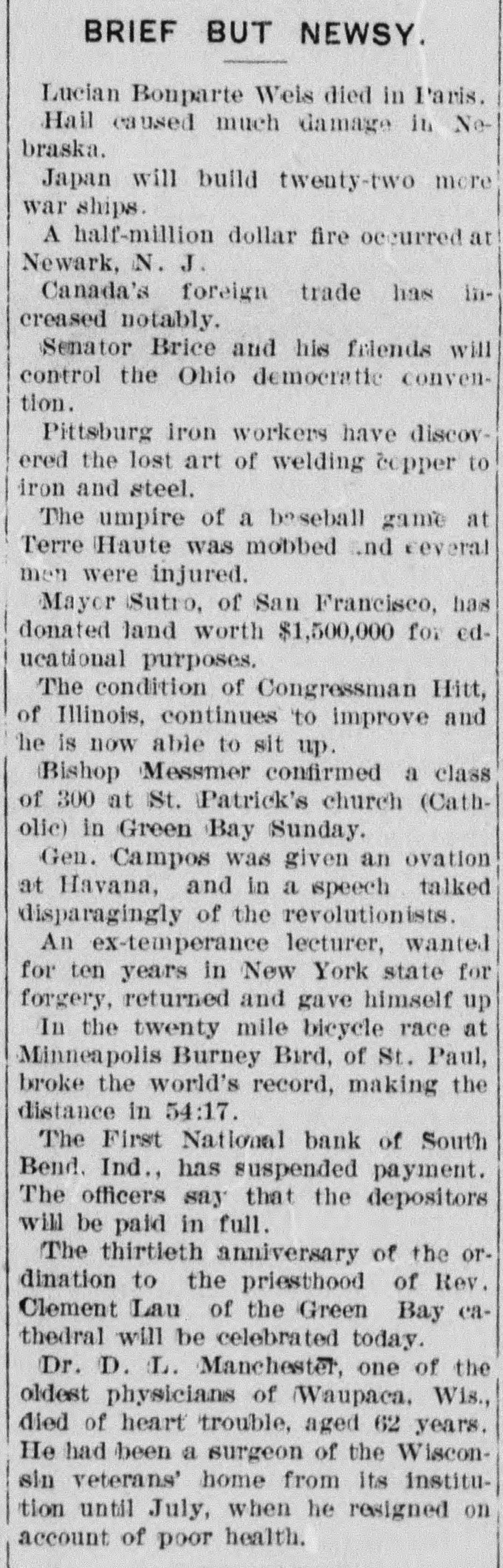 CONCERN WASHINGTON AND IDAHO Bank Officers Changed-Army Officers Transferred. Washington, D. C., Sept. 3.-L. R. Manning has been made president of the Pacific National bank at Tacoma in place of Frederick Mottet; O. B. Hayden, second vice president; L. J. Pentecost, cashier, in place of L. R. Manning, and A. G. Prichard, assistant cashier. The Chemical National bank of New York has been approved as reserve agent for this bank. The First National bank of South Bend has become insolvent and has been placed in the hands of Joseph G. Hein, receiver. The Idaho National bank of Pocatello has gone into voluntary liquidation by resolution of its stockholders, dated July 19, which took effect August 5. Captain Gunliffe H. Murray, Fourth cavalry, has been detailed to the recruiting station at No. 158 Church street, New Haven, Ct. Captain Leon A. Hatile, Fourteenth infantry, has been detailed as a recruiting officer to establish a station at Richmond, Va. These details go into effect not later than October 1. Leave of absence for two months from September 1 has been granted First Lieutenant Frank Owen, Fourteenth infantry. Private James Finley has been transferred from Fort Leavenworth, Kan., to Company G. Fourteenth infantry, Vancouver barracks. Original pensions have been allowed Warren Partch of Toledo, Lewis county; William McG. Colwell, Skamokawa, Wahkiakum county, and Archibald A. Stewart, Tacoma. Charles Clooman of Kalama, Cowlitz county, and Frank M. Werel of Hockinson, Clarke county, receive an increase. A renewal and increase has been granted Samuel Howlet of Castle Rock. The following reductions have been ordered: Ephraim Ranck of Roy, Pierce county; Joseph Phillips of Spokane.
