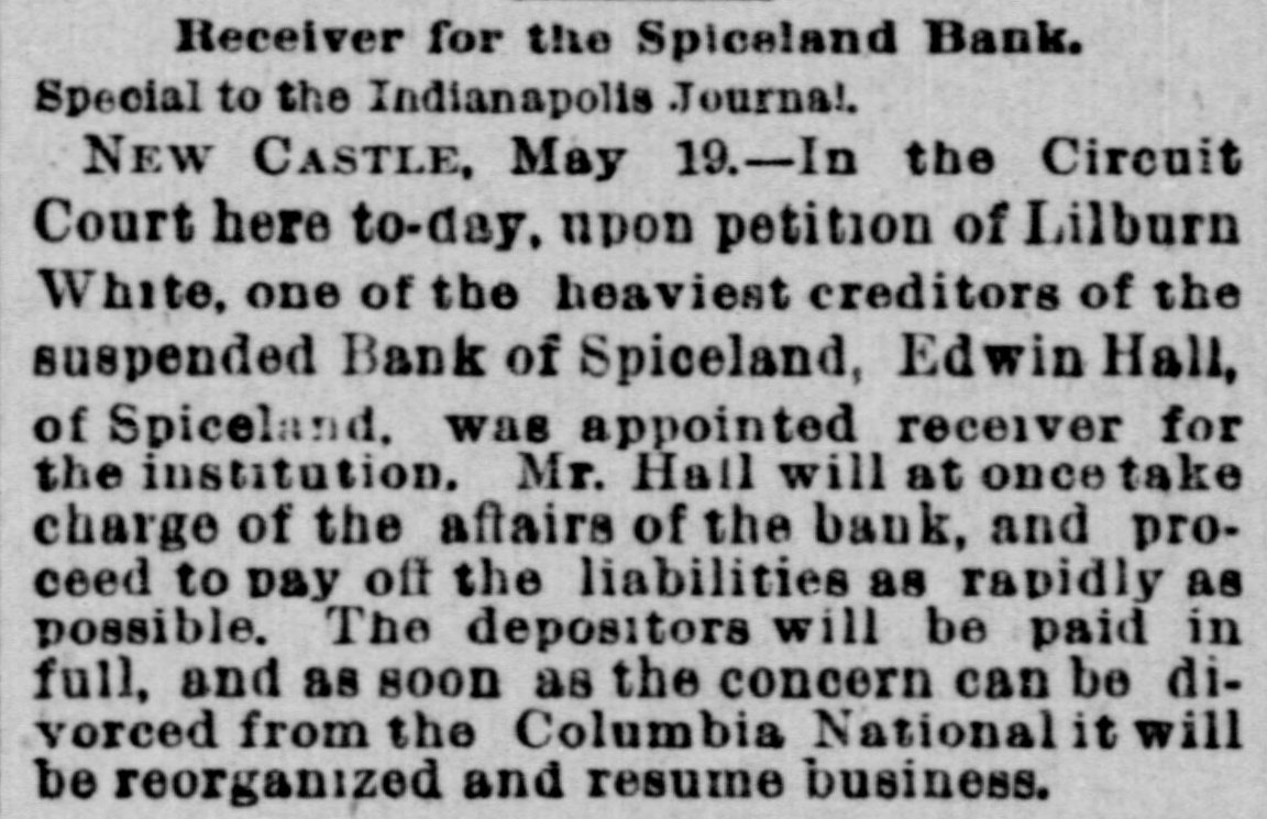 BANKING ON WIND. Alleged Facts About the Columbia Concern. DIRECTORS TALK OF RESUMPTION, But Matters Are In a Much Mixed Condition-Development of Financier Dwig-Operations of His County Bank Scheme-Connections That Have Gone Inder-Correspondents in Illinois-Im tators at Indianapolis-An Epidemic of Failures. CHICAGO,May 3.-Interesting disclosures are promised in connection with the investigation into the Columbia National bank failure. The directors have held a meeting to discuss the practiciability of resuming, but the result of their affairs of the bank are in such deliberations was not given out. The a thorough mix that it is not known just how matters stand. Zimri Dwiggins. president of the Columbia bank, was a banker at Attica, Ind., ten or twelve years ago and at that ti e established close relations with G. W. Wiggs and J. M. Starbuck, who were running a system of bucket shops under the name of Wiley, Strawbridge & Co. Sunk $300,000 in a Silver Mine. They determined to start a bank and organized the United States National bank with a capital of $50,000. The bucket shop business was subsequently broken up un der the bucket shop law, the bank being left in Dwiggins' control while Wiggs went to New Mexico. The stock of the United States bank was swelled to $500,000 and Wiggs, who had discovered an alleged gilt-edged mine, drew $300,000 to pay for it. The mine was to be sold to English investors. The mine was a "dead horse" and never panned out. Took Up a Country Bank Scheme. Nothing daunted by the failure of the New Mexican scheme, Dwiggins and Starbuck undertook the establishment of a chain of country banks. It is not own how many were then organized, but after the Columbia was established they went it with vim, and their connections are now more extensive than before. The scheme was to visit some well-known and well-todo farmer in a town and secure his services s cashier of a branch, the farmer taking a large block of stock. The money was advanced by the Columbia and some one put in control whom they could manipulate The country bank stock thus acquired was either used as collateral for loans by the Columbia National or bought outright. As the money sent out into the country soon came back to the reserve center the bank was not out of cash long, and practically no capital was required in the promotion business, Got on Too Heavy a Load. The Columbia, however, finally got load ed up with country bank stock for which it had no special use, and then it was de termined to organize a company to take stock, issue debenture bondson them and sell the bonds, The United States Loan and Trust company was according ly put in the field, with Zimri Dwiggins as president, and incorporated under the laws of Indiana, The company represented that upon the basis of country bank stocks yielding 8, 10 and 12 per cent. dividends and 6 per cent debenture bonds would be issued. Who Is Good for the Loan Company? To make the bond good the United States Loan and Trust company guaranteed the payment of principal and interest. The scheme caught on in good style and it is known that at one financial concern's office $250,000 of the United States Loan and Trust company's debentures had been registered. The approximate amount of bank stock held for this is 8450,000 and President Dwiggins.ha $500,000 more on hand. The nited States Loan and Trust company has no visible assets except about $1,000 in office furniture. Country Concerns That Failed. The following banks connected with the Dwiggins-Starbuck-Columbia bank combination, have closed: Commercial bank of Brookston, Ind.: bank of Dunkirk, Ind.: Commercial bank of Morristown, Ind.; Commercial bank of Russiaville, Ind.: Citizens' bank of Edwardsburg, Mich.: Union bank of Richland, Mich., Others in Indiana: Bank of Spiceland, at Spiceland, capital $36,000, Dwiggins subscribing $13,000 thereof; Citizens Bank of Hebron; Citizens' State Bank, of Knox (Dwiggins): Bank of Orleans at Orleans (Paris & Nave); banks at Walkerton, Arcadia, Oxford and Boswell. Correspondents in Illinois. There are a good many correspondents in Indiana and the following in Illinois: Byon's bank,of Byron (Dwiggins, Starbuck & Co.); Farmers' and Merchants bank of Casey; Bank of Lynn, East Lynn (O. A. Ross); Georgetown bank (Dwiggins, Starbuck & Co); First National bank of Hoopestown, capital $50,000; People's bank of Martinsville; Farmers' and Merchants' Carmel; State Bank of Farmers' Bank of Boyden & Son's of capital farm; Sheffield; Mount A. $25,000; W. bank, Ridge- Orian, of Spring Valley National bank, capital $50,000. Creditors Assured of Their Money. Crowds of people congregated around the offices of the Columbia National bank, but who were assured from notices posted by those had drawn on the bank that they themselves would see to the liquidation all given such drafts, and other assurances were of by officials that all would get their money. DID A DWIGGINS BUSINESS.