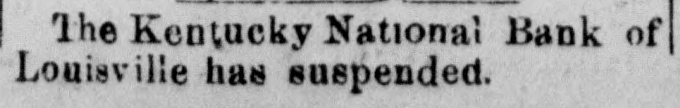 The first failure of the present crisis was that of the Kentucky National bank on Saturday...There was a heavy run on the German-American and the Merchant's Exchange banks. The Kentucky National bank of Louisville, Ky., closed its doors this morning.