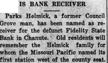 W. Johnson, state receiver for fall. ed banks, today announced dividends will be paid depositors of the following banks on the dates given: August 6-The Neosho Rapids State Bank. a second division of 20 per cent totaling $6,500. The bank failed November 2. 1928 Aug 10-The Farmers State bank of Hartford. first dividend of 40 per cent amounting to $53,140. The bank closed its doors July 3, 1928. August 12-The Fidelity State of 13 per cent, totaling $38,900. The bank of Chanute, B final dividend 1926. August 16-The Zarah State bank bank suspended operation June 14, falled September 22.