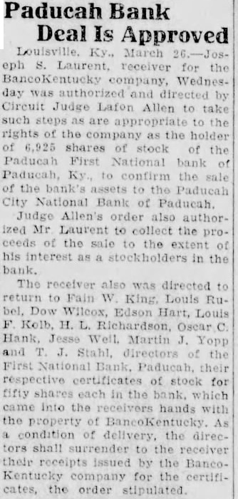 One our bankers says: "What's You are held down 'till then you are held western plains and valleys, what they today, has watered added security, and has prepared these stretches the earth by the application these waters, for Eden habitations for all things that live. The waters of the lower stretches the Mississippi have 80 slowed up that they cannot carry off the Gulf the sand and silt its tributaries bring to gradually fills up its bed, and without levees over of acres land and form inland sea. How must man continue banks continues fill the vital question the hour. By storing these tributary run off flood waste waters in the upper plains regions utilizing them for irrigation during the dry season in and August, only seepage waters need ever reach the lower Mississippi that only in the fall time when in this undertaking, development floods never occur. realization, man only delaying Thus two birds are killed with one security enjoyment of stone. good second great Eden garden will, by the application Over Score Banks waters, produce seven fold and more, year by in Southern Section year as long as time runs. Closed to Business Storage Prevents Floods There continuous warfare bewind, water and in (Continued from Page One) placements and The The American Exchange Trust waters are at work tearing announced deposits of land. The land again lifted the date of the bank earthquakes and by volcanie call. bank capitalized of solid train load of 100 Banks president of the Well, the Mississippi stitution. delivers equal quantity The banks acted under an Arkansilts and solubles into the Gulf of Mex- state permits them every ten minutes normal day of five days reopen or turn The forces of erosion are constantly their affairs to the state banking work. and mankind's strug- department. against the forces of nature, Closing of the National Bank of contests between individuals, Kentucky which had angroups and nations, rivers, brooks, nounced resources creeks and rills, stage their warfare followed closing of four smallwith one another for territorial Louisville quest and drainage control. guiar Bank Trust company The waters are ever battling against Franklin, and the Bank of and dancing with their Helen's, suburb of Louisville. load of debris on the Presidents of other Louisville banks The internal forces of the earth issued asserting their inforever producing stitutions were solvent in every The cannot spect and would not affected. At vent these changes, but they are Paducah, Ky., the City National Bank stantly at work obliterating and level- Paducah the them. the First National Bank PaduIn Isaiah, wer read "Every valley and the Mechanics' Trust and shall be and every mountain bank Paducah after negotiaand made and the crooked tions lasting some time. shall made straight and the rough State Funds Tied Up The four banking which have In the long ago, the magnificient closed Tennessee during the last Plattes rose heads in the weeks the Bank TennesRockies and flowed in subsidiary of and comerally easterly course, forming the Holston Union tween them great bank the Liberty bank structural plain with the Trust and company what known at the city Campbell County bank and Trust North Platte. Nebraska, forming company this point the main Platte river. Attorney General Smith thence flowing generally easterly has reported through the entire length of Nebraska in the funds were deposit emptying into the muddy, treach- Bank Bank Tennessee, the Missouri and the Missis- Trust and the Holston and the Gulf of carry- Union of earth within of the Fourth and First banks form destruction. National banks into the American Na Construction tional been announced Likewise, North Loup, the Midas was the acquisition Loup and the South Loup the one stream. known the Loup bank by the Commerce Union bank. which turn flows into East National bank, the Platte. Along border East Tennessee Savings bank and the flows the of City National eastern Colorado and idling in have been merged into the East Tenwith its earth National bank. nessee load to flood troubles the John Gore in NashJudge stretches the Mississippi. Monday ordered creditors Along these streams erosions Caldwell and company present their formed wide and claims before next July first and valleys. these rivers, lie joined creditors claimants from rich, level and or instituting separate suits against Caldtables, extending from eastern and company and enjoined all Colorado through the entire length parties any now pending from Nebraska. proceeding further except by consent truly beautiful region, which the these rivers drain. Once The Illinois banks which closed level ocean and too fair land Monday were the Bartlett and escape the attention of these soil State bank Clayton and the Timecutting, eroding streams. Yes, these State bank Timewell. They garden lands between these four corresponding institutions the nestled the first garden beState Savings, Loan Trust comfour rivers. pany Quincy, which closed In early geological times these then Two other banks which State rivers began digging their way Auditor Oscar Nelson said closed through this once level ocean plain, connection the failure of the plodding their way down to the MisState Loan and Trust This process chiseling and pany Quincy, were the South Side is continuing to this day and of Quincy and the Payson State continue long time lasts, bank Payson. unless arrested by storage these waters toward their source putting Kentucky Hard Hit them to beneficial for Louisville, As lands broken out and cultivaKentucky banks with totalthese pirate rivers increase their ling about including the erosion be added to the never National Bank of which ending accumulations down toward been business here 96 years, closed the Gulf. their doors