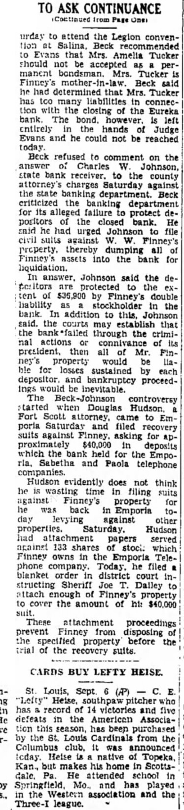 Special to The Gazette: Cottonwood Falls, Oct. 31-The raising of funds for the erection of a memorial in this county to the late Knute Rockne who with seven others was killed in an airplane accident near Bazaar in March of 1931, is gaining sponsors in various parts of the country. The Kansas Rockne Association officers. headed by W. C. Austin, state printer, and others of this city and Emporia, have received word from Los Angeles, Calif., of program that city will put on the evenings of November 10-11 to raise Southern California's quota. The Los Angeles Rockne association will put on two separate programs with a big dinner the night of November 10 at the Ambassador hotel and On the following evening there will be 15-act revue, dancing and other diversions. Stanford and the U. S. C. will play football game on the afternoon of the last day, and the sponsors plan to make the event a celebration for the football fans as well as an Armistice night observation.