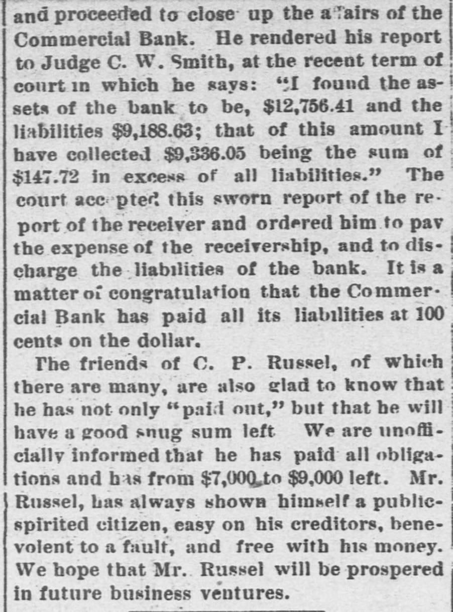 SAND-BURKS AND TUMBLE WEEDS. Kanesa! is and to have 800 Insurance ageuts. There is war among the flour men at Eureka. McPherson county again "agitatIng" for a court house. Lawrence recently had an Ice carnival An Ice time was "had' The Marion Record thinks there cannot be too many churches in town. A sarcastic than in Atebi-on has named a street car horse Naney Hanks. The editor of the Ft Scott Lantern wants to be coal oil inspector. How natural! Kausas manufacturers received $300 in bounties this year for the sugar they made. A Sterling man has invented a traction thresher engine which uses gasoline for fuel. Reform is getting there. All the saloons in Wichita have to close at 12 o'clock every night. Ex-Senator H. B. Kelly has been admitted to the bar: that is to say he has become a lawyer. The Commercial bank a Goodland has failed with assets twice the amount of its liabilities. During the last twelve years the value of farm land in Kansas has increased fully 25 per cent. The editor of the Fredonia Citizen, after seeing a skirt dance for the first time, thinks it "tolerable," The "per capiter" of bank deposits in Dickinson county is $28, and the county has a population of $22,000. Mrs. Lease's son in named "Charles H." Does the "H." stand for what the lady told the farmers to raise? The rumor that Johann Most is coming to Kansas is not true, and there never was any foundation for it. The second dividend of 20 per cent has been declared by the receiver of the defunet Second National Bank of McPherson. An Ottawa county farmer complains that since the legislature opened his hogs have acquired the habit of sucking the cows. A Topeka real estate man and a Lawrence merchant threaten to leave the state on account of legislative muddle. Well, ta-ta! The meanest man in Cloud county, according to the unanimous verdiet of the populist party, is the editor of the Concordia Empire. One bad thing about Mr. Hoch ing to the legislature is that his man, Dan Lindsay, issues a "salutatory' each week In the Marion Record. An Abilene man is so lazy that he won't get out of bed when somebody yells "fire!" He thinks it's only scheme to awaken the nightwatchman. As fish are now being hauled into Minneapolis by the wagon load, Governor Riddle hasgiven Tom Cordrya vacation in order to feed uphis brains. A horse shoe suspended over the door of an Atchison house for luck, fell down recently, and striking a child of the head, caused doctor bills that footed up to $30. There is a marked improvement in the calamity papers that come to this table, which may be accounted for from the fact that the editors have been down in Topeka for the past three weeks. It is reported that George Collett of of McPherson, Ellsworth, had and to Warren sit at Knaus separate tables: the recent Democratic editorial banquet in Topeka, owing to the largeness of their feet. The Emporia Reuublican which has many queer fancies, suggests that State Treasurer-elect Biddle build a sub-treasury and get his Alliance friends to put up their wheat, corn etc., as security for him. State Journal: If Kansas can produce 74,000,000 bushels of wheat with scarcely one-twentieth of its wheat lands utilized, think of its possibilities; and then think of Topeka with a dam and fifty big flouring mills.