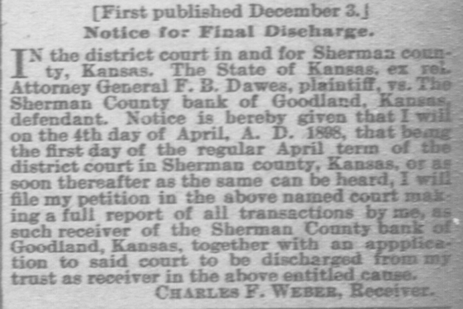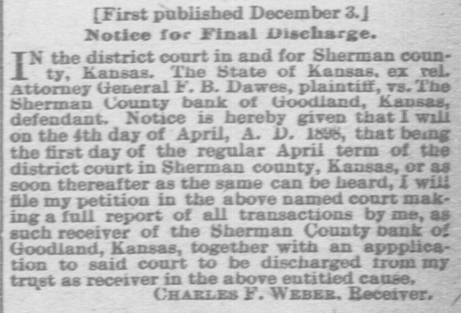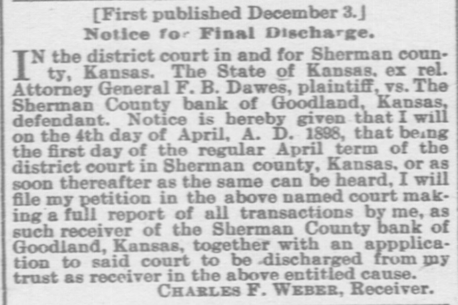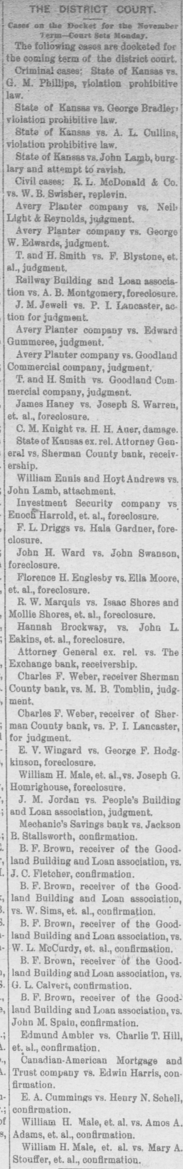 Mar. 9.-Sherman county, Goodland, Kan. Bloomfield (Neb.) State Commercial and Savings, San Jose, Cal. Mar 27-Midway (Ky.) Deposit. Mar 30-First national, Morris, Minn. Apr. 4--Farmers', Decatur, III. Apr 11-Chadron (Neb.) Banking Co. Apr. 16-First national, and Liberty savings. Bedford City, Pa. Apr. 22-American national, Denver, Col., $865,231. Apr. 24-Grand Forks (N. D.) national May 1-City savings, Hot Springs, Ark.... Bank of Fairland, III. May 7-Citizens', Union City, Ind. May 14-Sumner national, Wellington, Kan May 19-Citizens', Edwardsburg, Mich. May 26-National, Jefferson. Tex. May 28-Bank of New England, Manchester, N H. June 2-Bank of Maroa, Ill. June 3-Farmers' deposit, Creighton, Mo. June 11-John A. Thompson's bank, Edinburg. Ind First national. Larned, Kan. June 16-First national, and Bank of Cheney Cheney, Wash. June 25-Security savings, Winchester, N. Hinsdale (N. H.) savings. H July 13-Peot It's savings. Lansing, Mich. July 16-First national, Hillsboro, O. July 23-German savings, Omaha July 27-Farmers' bank, Rock Valley, Ia. July 29-Denison (O.) deposit. Aug. 6-American national, New Orleans Conkling Bros, Nevada (Mo.) bankers Banks at Bronaugh and Richards, Mo. Aug. 7-Lake county, East Chicago, Ind. Inghar: county savings, Lansing, Mich. Aug. 11-Security, Duluth, Minn.: $800,000 Murray Hill, New York, $500,000. Aug 12-Bank at National City, Col. Aug 14-State bank. Peru, Ill. Aug 19-Bank of Argentine, Kan. Aug. 21-Bank of Wymore, Neb. Aug 24-Church & Son's state bank at Lowell, Mich Aug. 28-Sioux national, Sioux City, Ia., $900.000 Sept 1-First national, Beatrice. Neb. Sept 2-Manufacturers' bank, West DuJuth, Minn State Loan & Trust Co. bank. Ogalalla, Neb. Sept. 4-First national. Helena, Mont. Sept. 5-Jackson county, Black River Falls, Wis. Sept. 10-Mutual national, New Orleans. Sept. 11-Bankof Commerce, New Orleans. Sept. 14-Bennett national, New Whatcom. Wash Sept. 16-Midland state, Omaha, Neb. Sept 17-Shellsburg (Wis.) bank. Sept. 19-National, Troy, N. Y.; $449,000. Sept. 22-Pawnee (III.) bank. Sept. 23-Mapleton (Minn.) bank. Sept. 25-Argonia (Kan.) state bank. Sent. 26-Tribune (Kan.) bank. Oct. 5-First national, Mount Pleasant, Mich Oct. 7-First national, Ithaca, Mich. Oct. 10-Security Trust Co., Nashua, N. H. Oct. 12-First national, Eddy. N. M. Oct. 14-Marine national, Duluth, Minn Second national, Rockford, Ill Bank of Commerce. Buffalo, N. Y. Bank Oct. 16-Merchant's, Atlanta, Ga of Pukwana, S. D. Oct. 19-Marion (0.) Deposit. Oct. 28-At Big Rapids, Mich., Mecosta savings. Nov. 5-Marine national, Duluth, Minn. Nov. 10-Iowa savings, Sloux City First national, Decorah, la. Nov. 14-La Harpe (III.) bank. Nov 19-First national, Sioux City, Ia Sioux City, Ia. Nov. 22-First national, East Saginaw Mich. Nov. 23-Dakota national, Sloux Falls, S D. Nov. 24-Davis County Savings associa tion Gallatin, Mo. Nov. 28-Citizens' bank, Midlothian, Tex Mis Nov. 30-First national, Tyler, Tex souri national. Kansas City: $1,131,000. Dec. 1-German-American, Portage, Wis Bank of Westport, Mo. Dec. 5-Baxter, of Baxter Springs, Kar Henry county, at Clinton, Mo. Dec. 10-Harlan (Ia.) state Jonatha Easterly, Columbiana (O.) bankers. Dec. 11-National Bank of Commerce Duluth, Minn First national, Niagara N.Y. Dec. 14-First national. Holidaysburg Pa Banks at Martinsburg and William burg, Pa. Dec. -National bank of Illinois, at Ch cago-E. S. Dreyer & Co., Chicago, $1,200,80 Wasmansdorff, Heinemann & Co. Dec. 22-Bank of Minnesota, and Unio stockyards bank, at St. Paul. Dec. 23-Bank of West Superior, Wis American Banking & Trust Co., Aubur Me. Dec. 24-Calumet state bank, Blue Islan III. Dec. 26-Security Mortgage & Trust Co Dallas, Tex.: $2,000,000-Atlas national, Ch cago. Dec. 28-Bank of Superior. Wis Sca dia, at Minneapolis McCoy Banking C Independence, Mo. LARGER COMMERCIAL CONCERN INVOLVING LIABILITIES OF $500,0