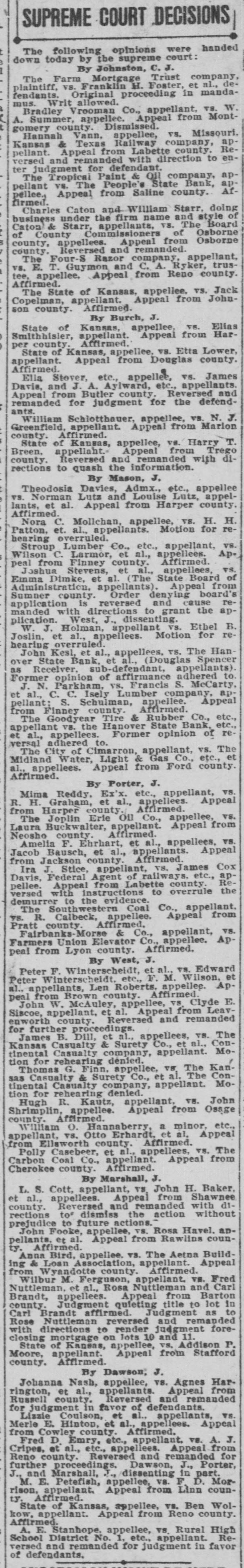 Fred D. Emry, etc., appellant, vs. A. J. Cripes, et al., etc., appellees. Appeal from Reno county. Reversed and remanded for further proceedings. Dawson, J., Porter, J., and Marshall, J., dissenting in part.
