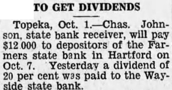 Johnson, state bank receiver, will pay to depositors of the Farmers State Bank in Hartford ... dividend ... paid to the said state bank.