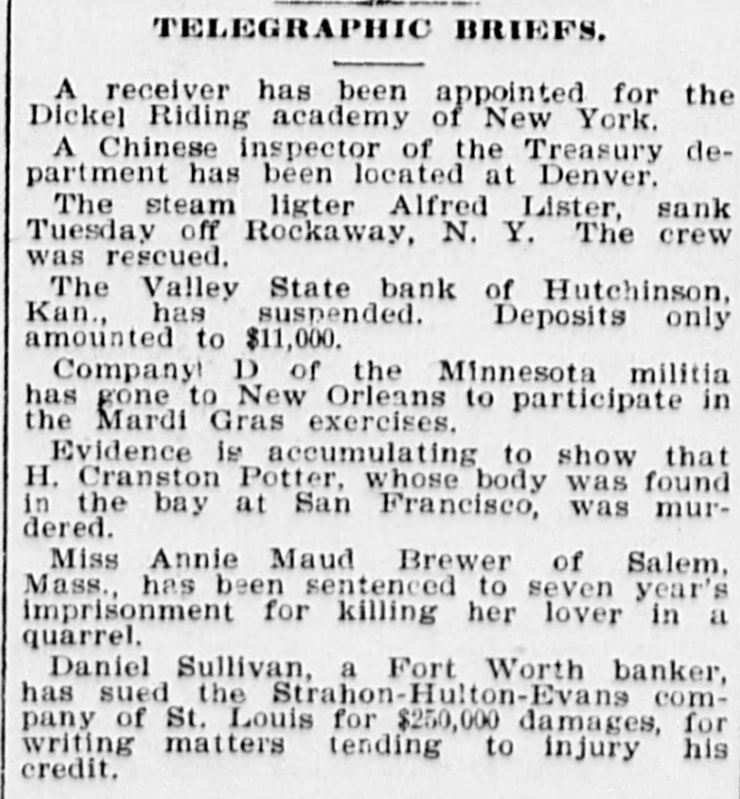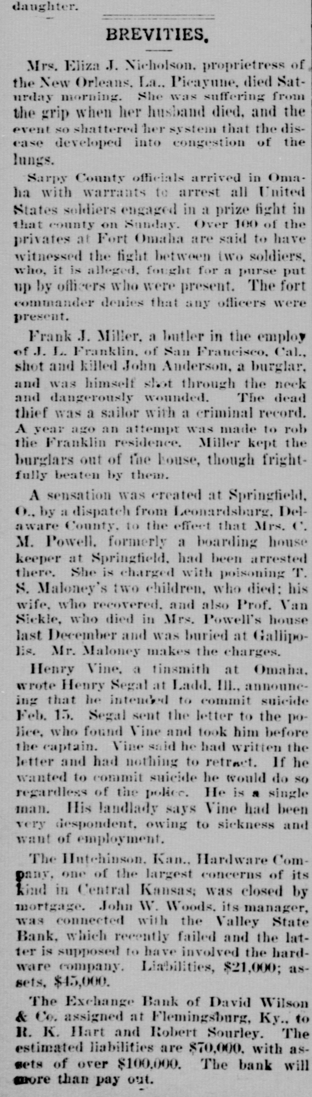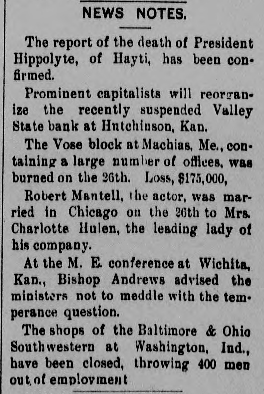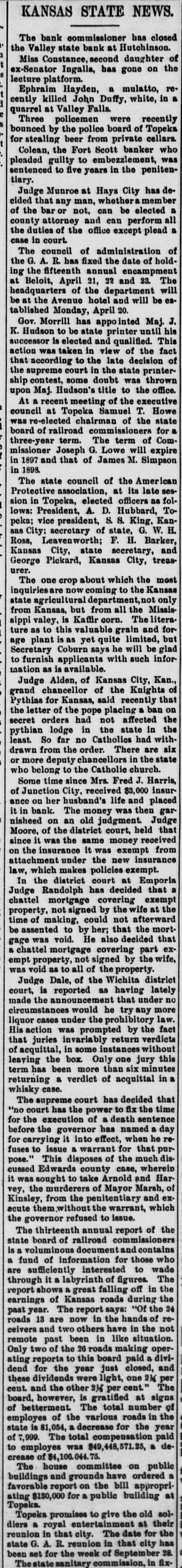 Ephraim Hayden, a mulatto, recently killed John Duffy, white, in a quarrel at Valley Falls.