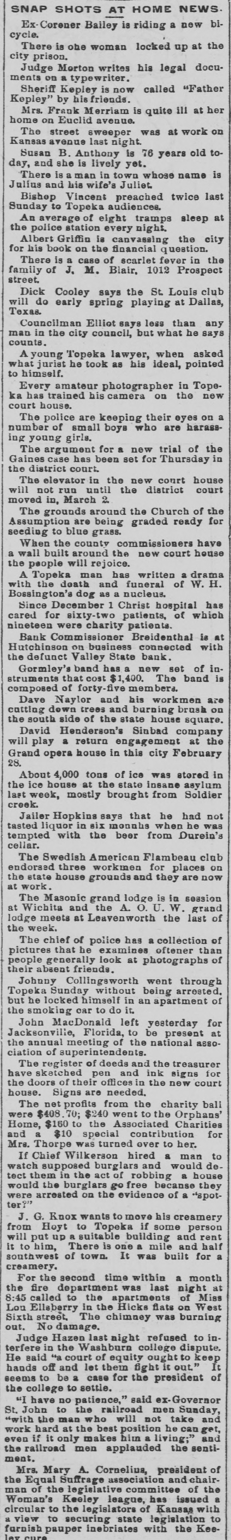 Topeka promises to give the old soldiers a royal entertainment at their reunion in that city. The date for the state G. A. R. reunion in that city has been set for the week of September 28.