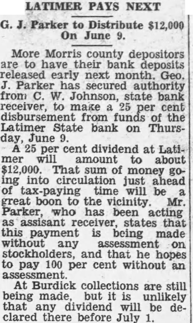 NOTICE OF SHERIFF'S SALE In the District Court of Morris County, Charles W. Johnson. Kansas Receiver of the Latimer State Bank Plaintiff The Latimer Farmers Union of Latimer, Kansas, and Paul Wendt. Defendants NOTICE OF SHERIFF SALE Notice is hereby given that under and by an issued by the Clerk order the District sale, Court and for said County of Morris in certain action in said court numbered 8187, wherein the parties above were tively plaintiff and defendants, to mle the undersigned Sheriff said county directed, will offer for and auction, and sell to the highest bidder for cash in at the Latimer Farmers Union Elevator, Latimer, Kansas. county, on the 5th day of 1932, at M. of said day the described personal property, to-wit: Elevator, including: Elevator building Wareroom building Office building Fairbanks platform scales Loading scales Fan Water small scale iron work table roll top telephone chair stool adding machine (Burroughs) typewriter Said property offered for in single items, then bulk. single Items bid is the highest, single bidder. If bulk bid the highest and best bid, then it will be sold in bulk.