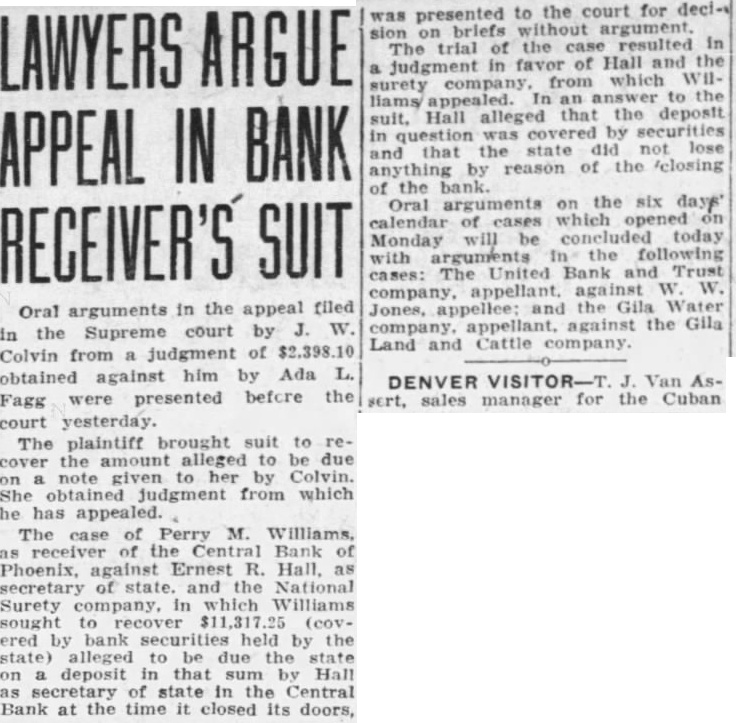 NAME BAUMERT DEPUTY TO U. S. REVENUE CHIEF Andrew Baumert Jr. of Phoenix has been appointed deputy collector of internal revenue for Arizona, according to an unofficial announcement made Saturday. Mr. Baumert will assume his new position on December 20, it was stated. He will succeed C. C. Lewis, present deputy collector of internal revenue. The appointment of Mrs. Shepard Hiscox of Phoenix as secretary to the collector of internal revenue and assistant cashier was unofficially announced. Mrs. Hiscox succeeds Mrs. Nina E. Duncan, who has acted as secretary to Frank R. Stewart, former collector of internal revenue. No other immediate change in the personnel of the office of the collector in Phoenix is contemplated, it was stated. Mr. Baumert the new deputy collector of internal revenue has been identified with the republican politics in Arizona for a number of years. Mr. Baumert served as secretary to the board of directors of state instituttions during a portion of the two terms served by former Governor Campbell. He also served as receiver of the defunct Central bank of Phoenix for more than two years,
