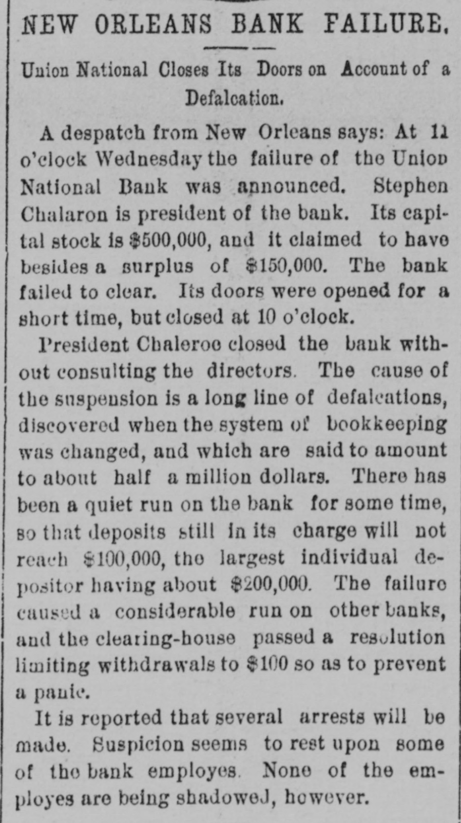 LATE NEWS NOTES. Seven cows were killed by lightning near Leavenworth. Miss Willard has issued an appeal to the W. C. T. U. for the Armenians. Jules A. Barron, brother-in-law of ex-Governor Lubbock of Texas, was killed by a trolley car at Galveston. Germany and Russia are endeavoring to uniform extradition laws in all Europe. with relation to Anarchists. The American representatives have finished their examination of English archives upon the Venezuelan boundary question. The Venezuela Commission will report to the President early in De. cember. Examiner Escott says that the liabilities of the Union National Bank of New Orleans are $1,635,700. C. L. Grimes was acquitted of the charge of murdering his son-in-law, Luther Whitmore, at Moberly, Mo. Two swell robbers held up five men in a Chicago office, got $1,600, shot a milkman and escaped in his wagon. President Nicholls and Cashier De Beane have been arrested at New Or. leans for receiving deposits in the Bank of Commerce after it became insolvent. It is report d that England, Russia and France will act together as regards Turkey. A cloudburst struck the town of San Marcos, Texas, and washed away a large portion of the town. Treasurer George S. Morrison of Rensselaer county, N. Y., is a defaulter for $250,000. An anti-Masonic congress is in session at Trent, Southern Tyrol, with delegates from all European countries and Canada. Banks of Greeley and Argonia have failed. Mrs. Julia Lamb of Worth county has been convicted in the federal court at St. Joseph of pension frauds and fined $1,000 and costs of suit. Edward H. Mohnken, who resided near Sedalia, died from blood poisoning, the result of an accident wherein his ankle was fractured. John W. Wicks of Topeka, who was married in St. Joseph last week, now mourns the loss not only of his wife but of $300 with which she skipped out. Four murderers were executed in New Mexico in one day. Bessie Bellwood, the well known music hall singer, is dead. Her death was due to syncope. Eugene C. Gregory, a Yale student, committed suicide in his home in New York by inhaling illuminating gas. Al Ruhman, the husband of Zella Nicolaus, has been sent to the Chicago bridewell on a fine of $100 for vagrancy. Harry M. Conway of Chicago was shot and killed by his 18-year-old wife, who then sent a bullet into her own heart. Li Hung Chang has sent a message to the secretary of state thanking the United States government for the many courtesies shown him on his visit to this country. I A convention of delegates from the 0 several states will be held at Asheville, N. C., October 21-23 to petition Congress to adopt a "national flower of America," the convention to select the flower. D. D. Breckinridge of Watertown, N. Y., en route to Amesville, Ohio, to be married to Miss Ethel Gould, had his leg broken in a rail way wreck at Athens. Miss Gould, on hearing of the accident, went to Athens, and the B wedding took place at the appointed time. Callias Bey. the Arabian who married the widow of P. T. Barnum, is dead. & Carnegie armor plate making secrets were learned by Russia through a small contract placed at Homestead. A Russian was present for eight months by stipulation in the contract, and learned the whole business. Carnegies were very accommodating, expecting new orders from Russia. James J. Joy of Detroit, famous railroad builder and financier, is dead. Burpee, Ramsey & Co., shoe manufacturers, of Lynn, Mass., have failed. They did d business of $1,000,000 a year. Because he slapped a 5-year-old white child James Hawkins was lynched and Alexander and Arthur S Green shot dead near Gretna, La. All were colored. James A. Keaton has been appointed P associate justice of the Oklahoma Supreme court. The lumber and mills of the Cascade Iowa, Lumber company were det stroyed by fire. The loss is $105,000. A disastrous gale visited Great Britain. Much damage was done in London. Frank H. Johnson, a Chicago grain broker, killed himself in Lincoln park because of losses. National Sporting club, London, will not allow Corbett on the premises, but will welcome Fitzsimmons. Allied Silver forces of Topeka will run C. K. Holliday for the Legislature against E. D. McKeever, Republican. A great locomotive on the Eig Four railroad blew up at Pekin, ILL, killing the fireman and wrecking a factory near by. Cattle Thief Kittrell, under arrest in Mexico and wanted in Indian Terretory. can not be extradited, his case not being covered by treaty. A. D. Powers, a Cuban worker in Chicago is missing.