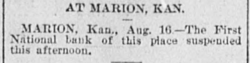 AT MARION, KAN. I MARION, Kan,, Aug. 16-The First National bank of this place suspended this afternoon. I