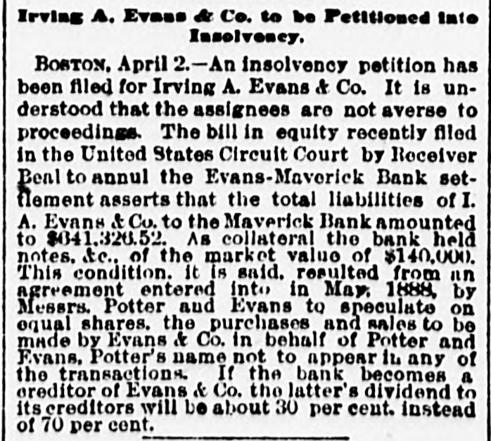 THE 551 claims proved at the Maverick bank, Boston, aggregate about $1,800,000. The receiver has deposited with the United States sub-treasury $90,000, making a total of $2,300,000 now standing to the credit of the bank's creditors.