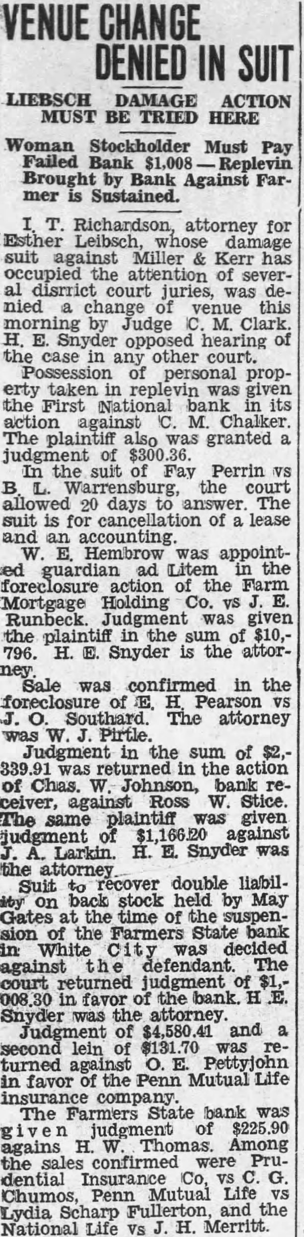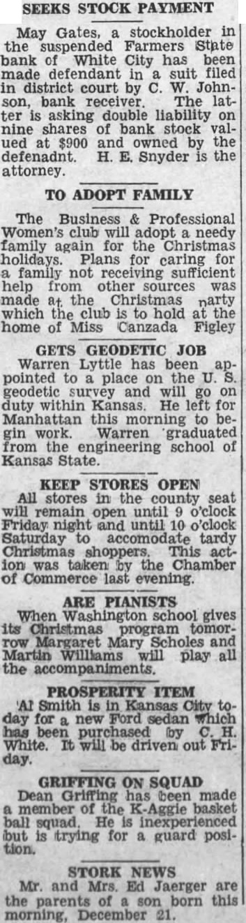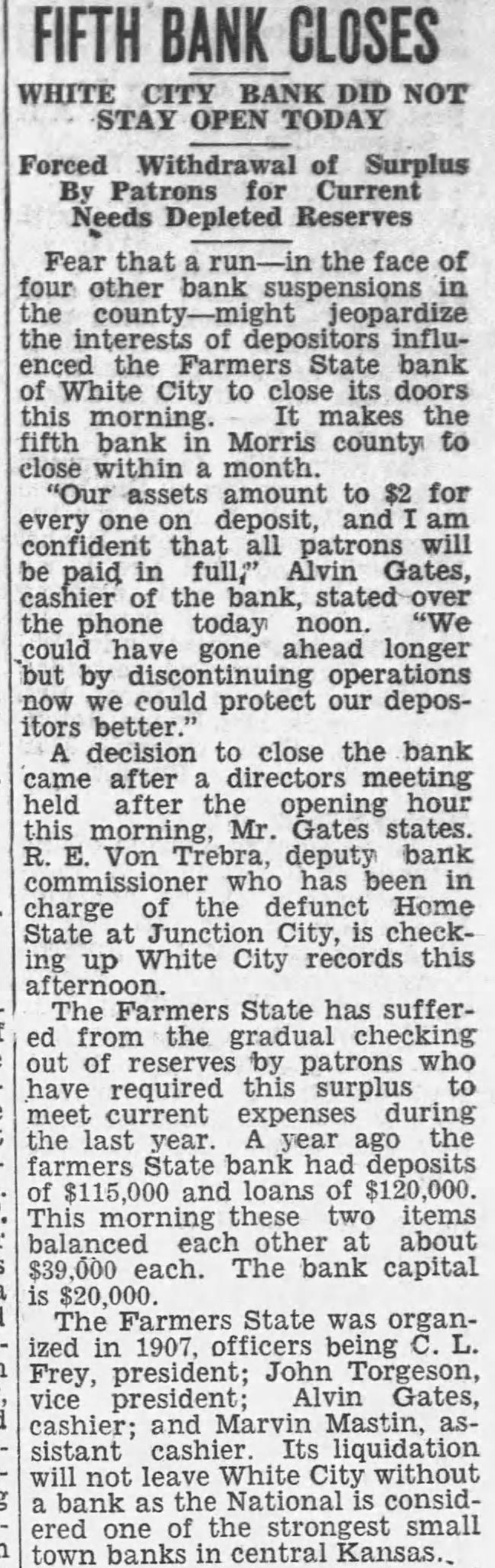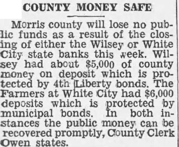 BANK PAY Three stockholders the Farmers State bank at White City have paid their double liability and been released by Johnson, state bank receivE. Sanford. owner of shares of stock paid $300, Ole Olson paid $200 and Alfred Kitchen paid $100.