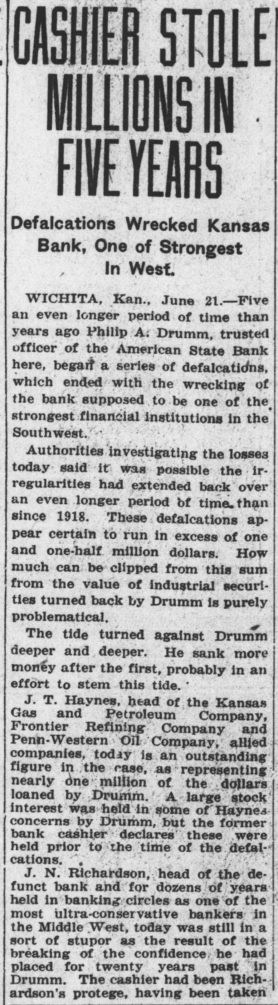 Commissioner Peterson believes one of the outstanding accomplish ments of his department of the last year has been the successful reorganization of score of banks which, had this process not been effected, would have caused a heavy drain on the guaranty fund and even heavier losses to the stockholders. The most extensive undertaking of this kind was the organization of the Wichita bank which succeeded the defunct American State bank. By this plan a loss of more than $2,000,000 to the guaranty fund was avoided.