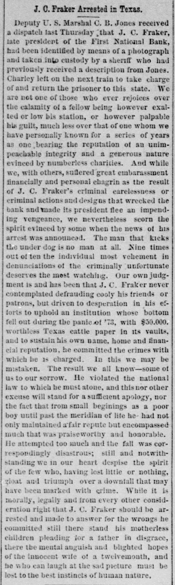 tenced to bear the ignominy of J. C. Fraker.