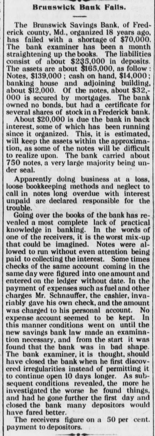 The Brunswick Furniture Company must pay an over draft of $8,696.22, to the receivers of the Brunswick Savings Bank.