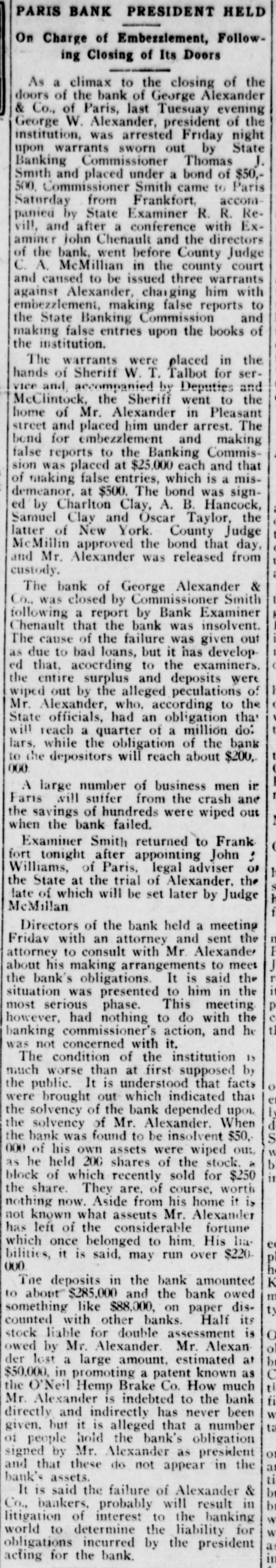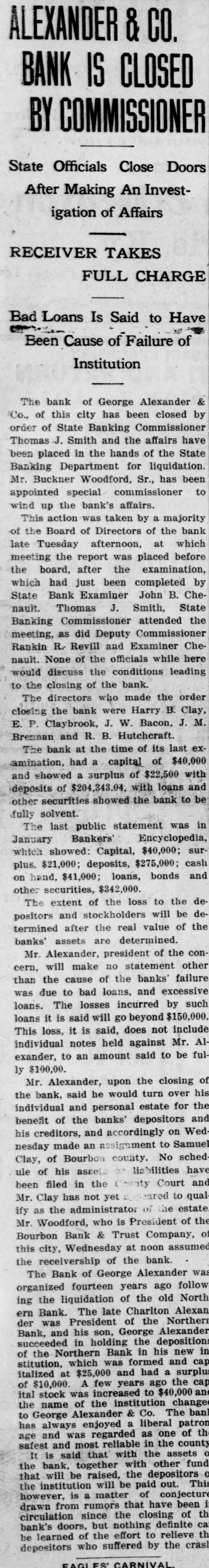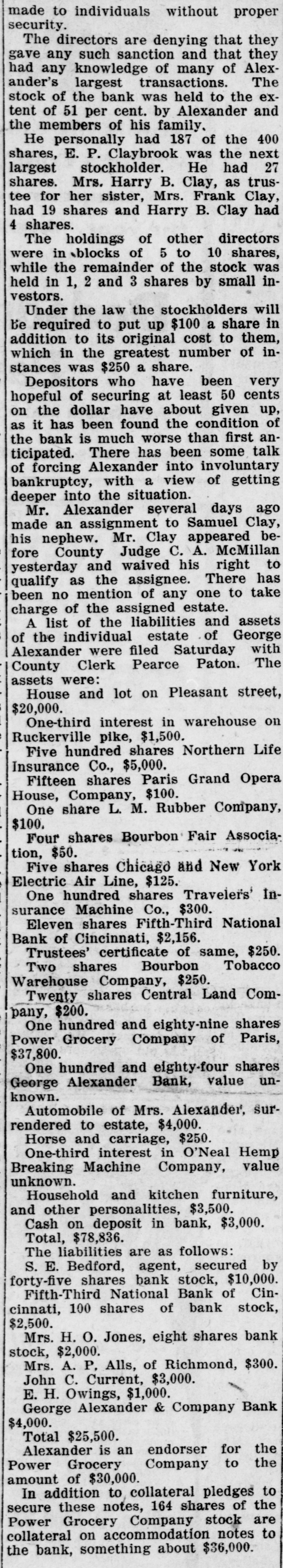 Mr. Hutchcraft was a director in the failed bank of George Alekander & Company and was one of the borrowers from that bank, and the failure of the bank helped to precipitate the financial difficulties which led to his assignment.