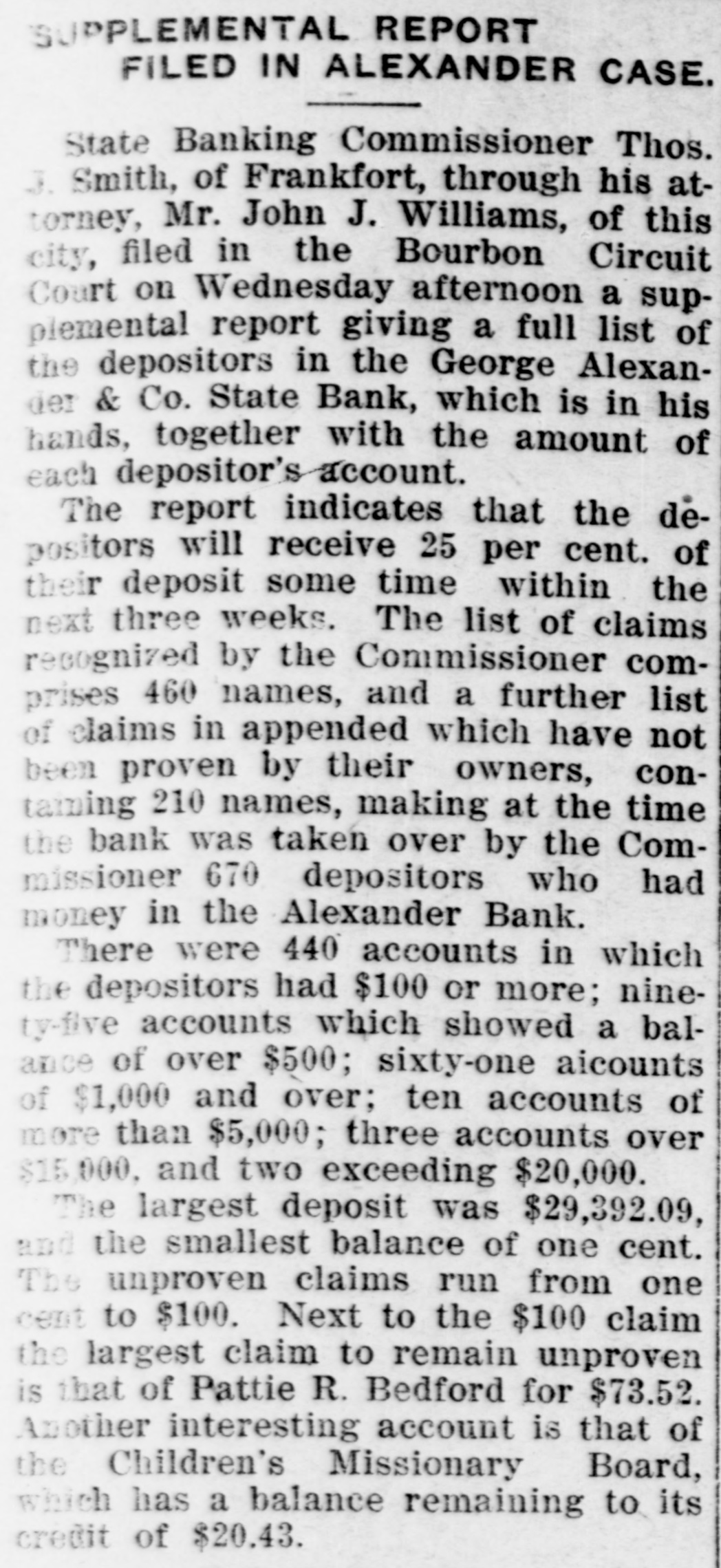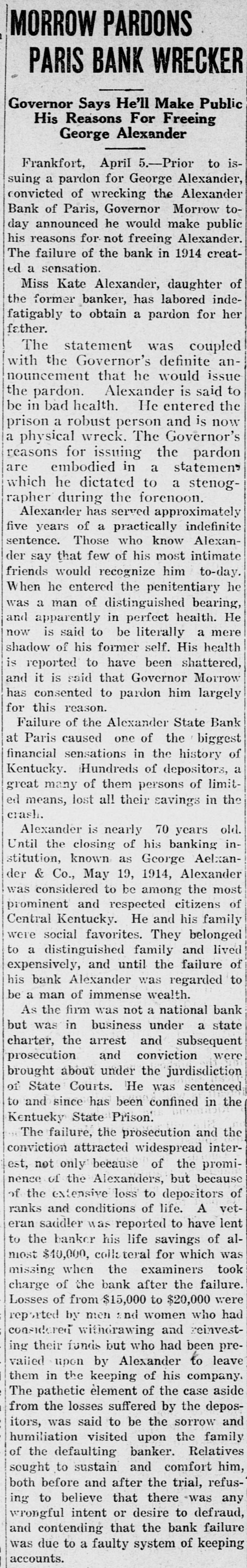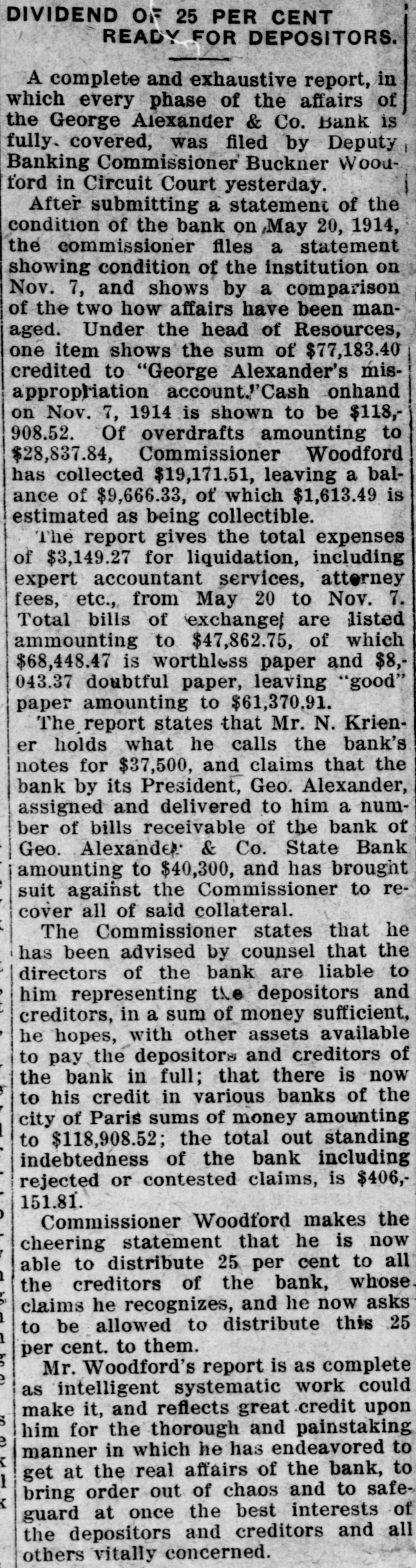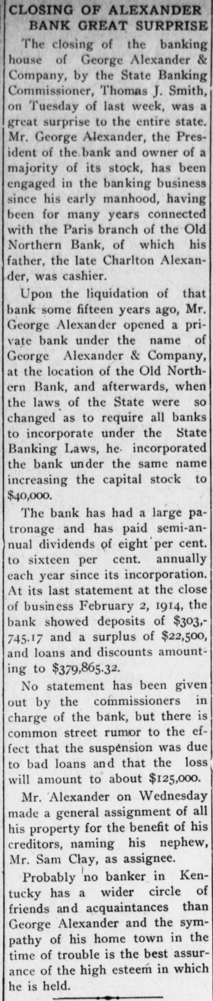 Mr. Hutchcraft was a director in the failed bank of George Alekander & Company and was one of the borrowers from that bank, and the failure of the bank helped to precipitate the financial difficulties which led to his assignment.