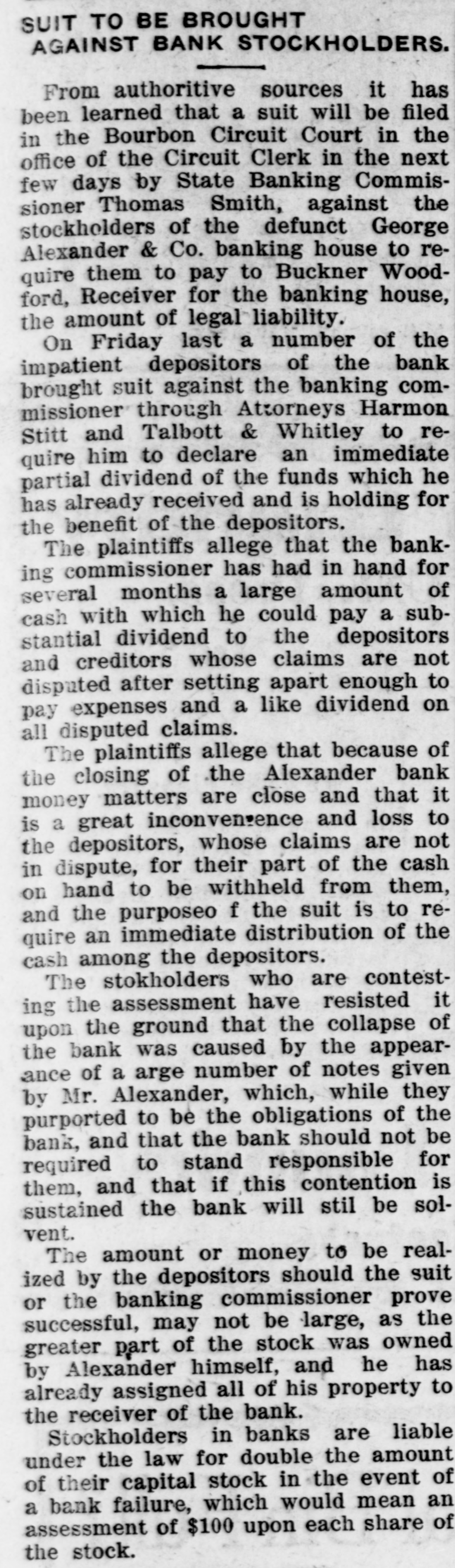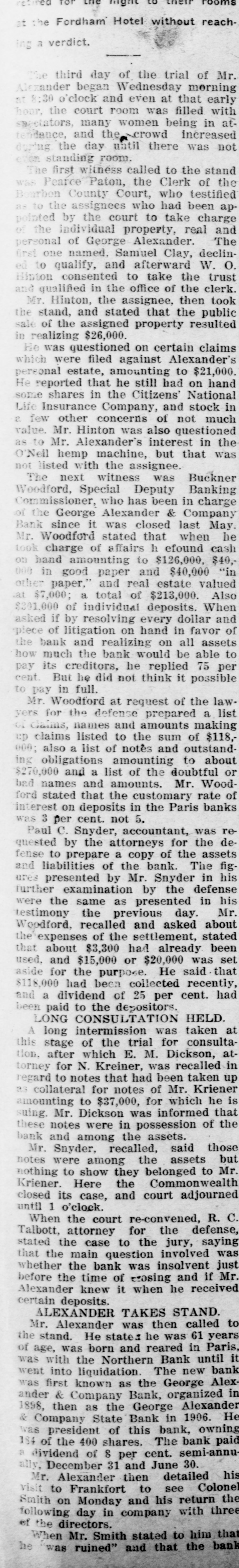 Mr. Hutchcraft for many years has been looked upon as a safe and conservative business man. He has always enjoyed the confidence of the community, did an extensive business and accumulated a large property. He dealt largely in wheat, corn and bluegrass seed and in addition was a farmer on a large scale, handled extensively cattle, hogs and other live stock, and was one of the largest tobacco growers in the county. His holdings of real estate, besides city property in Paris, worth some $40,000 to $45,000, include some 800 acres of Bourbon County land.