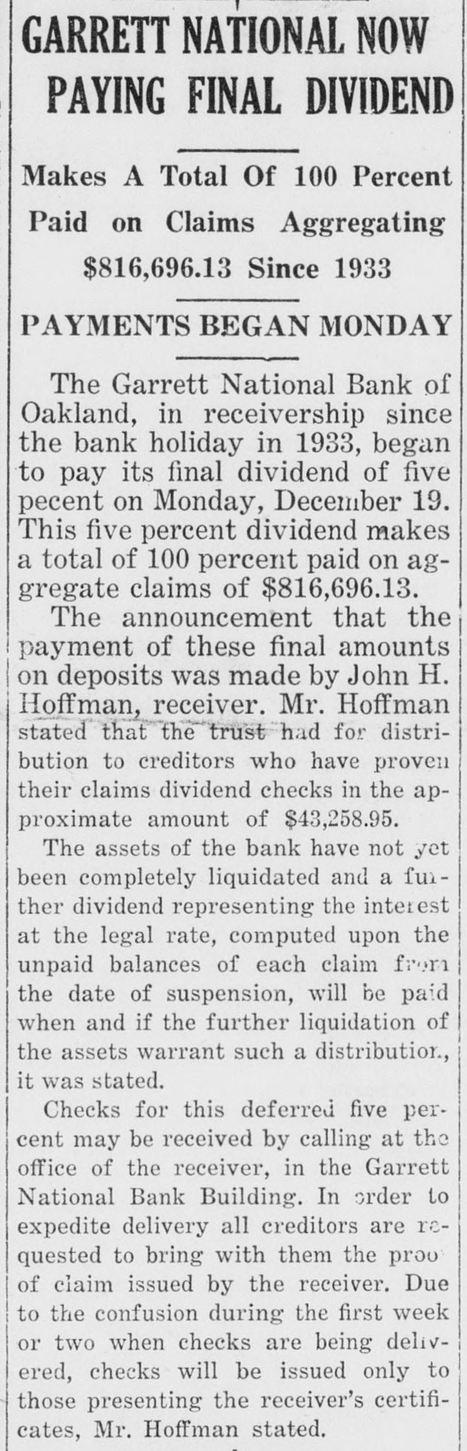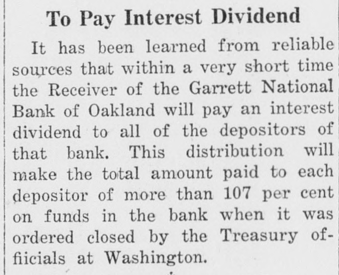 Garrett National Bank of Oakland,