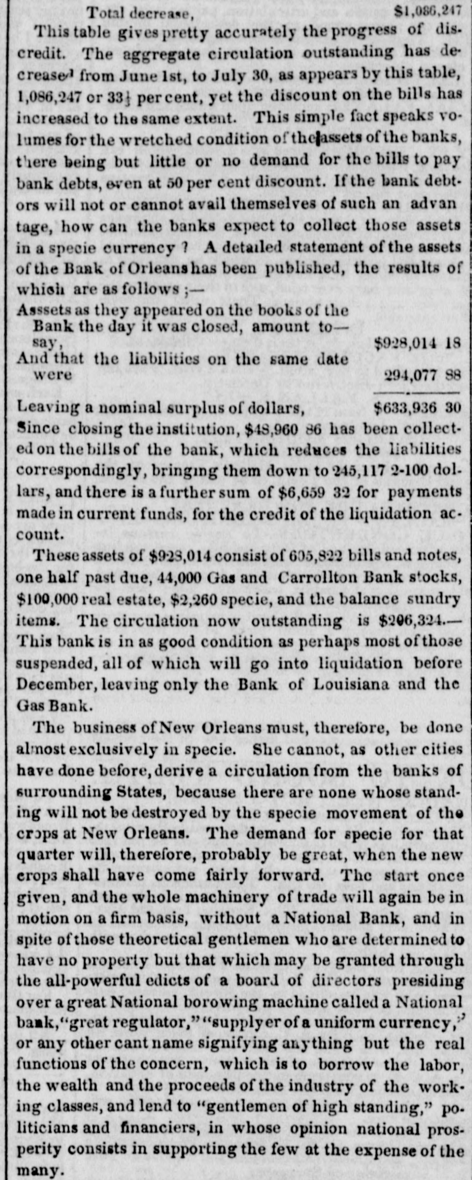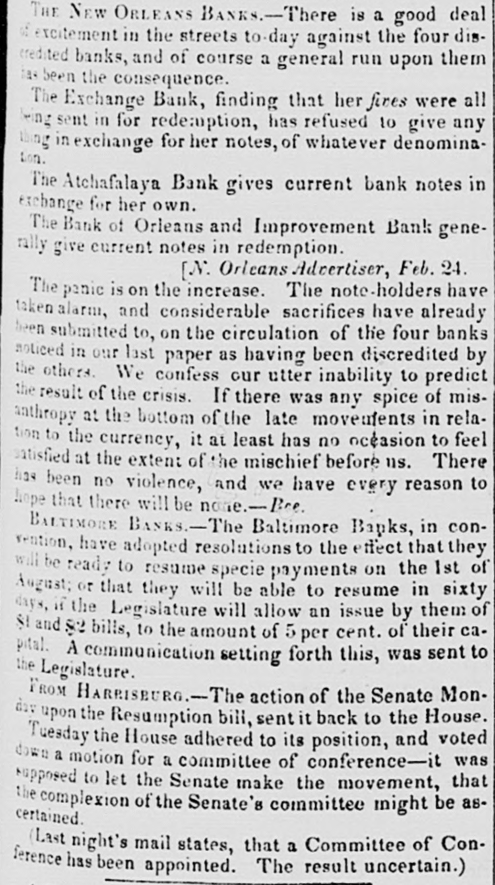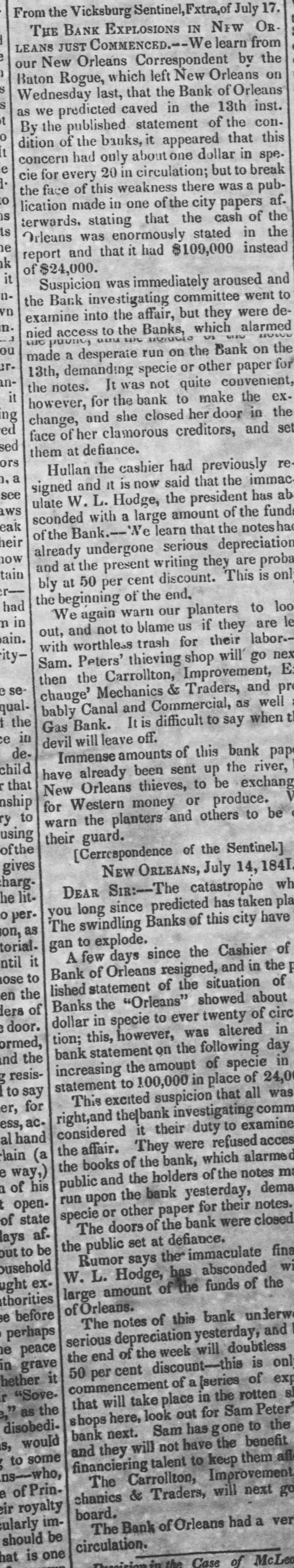 Specie continues to accumulate, and we notice no change in rates. The only demand is for New-Orleans. One of our Banks shipped $10,000 a few days since, and private houses are sending considerable amounts. We quote American Gold, old 6 prem Spanish Dollars 3 a it prem Carolus Dollars 3 a 6 prem Mexican Dollars : 5 prem Five Franc Pieces 93 a 94 cents Doubloons $16.00 a 16 25 Doubloons, Patriot 15.60 a 15.65 4 84 a 4 86 Sovereigns 4 83 a 4 85 Light Sovereigns 5-a 5 05 Heavy Guineas A heavy Sovereig weighs 5 dwt gr. There is an abundant supply of Treasury Notes at par and 1 discount. A letter from Amsterdam, of 28th June, published in Le Commerce of the 7th inst. says Great sensation has been excited on Change to-day by a notice given by the house of Hope & Co., which announces that the coupons of the American stock which be. come due on the 1st of July will not be paid. because the house has received nothing to make this payment. On this point there is not much 10 say, because it was foreseen that the funds for payment of the coupons would not arrive. But what is openly blamed. and will probably be the founda. tiou of an action against Hope & Co is, that their bankers having been furnished by the Bank of the United States with a quantity of effects (valeurs) as security for the tenders, have thought themselves authorised to part with a portion of these securities in exchange for others. As chance would have it. though the nominal value has remained the same, it turns out that Messrs. Hope & Co. have parted with the most valuable, in exchange for such as have hardly any value at all. We need not say that the holders are furious. The Tolls ON the Canals of this State received to the 22d $711,334 inst. amount to 847,392 Same time 1841 $136,058 Difference in favor of 1341 The Newark City Council having passed a Resolution that the Morris Canal Co. be required to repair the bridges over the Canal, or upon failure the Street Commissioners be authorized to fill it up ot those points, a correspondent of the Newark Advertiser enters his protest and says that there are no funds with which to make these repairs; that the property is in the hands of Receivers for the purpose of liquidation, and that the Canal which the Council thus prepose to destroy is the only property left to pay the creditof the concern, whose claims amount to $9,000,000, in the following order of title $850,000 Due to the Dutch 2,000,000 State of Indiana about 800,000 State of Michigan about 1,300,000 British bond-holders about 4.600.00 Stock-holders $7,950,000 Total besides numerous domestic creditors. The correspondent calculates that the Newarkers would by such a course not only commit a gross imposition open the creditors, but also bite off their own noses. The gross receipts on the Eastern Railroad from 1st Jan. $116,498 to 30th June were 116,947 Same time 1841 The road from Boston to the Partsmouth deput has cost $2,734,693. The precise operation of banking in Cincinnati from April to Jane is thus stated Means paid out. Means reduced $161,951 Discounts For Depos. reduced $34,648 16,190 14,284 Bk. Balances paid Bank Notes 661 Circulation increased. 28,367 Bank Credits $79,205 Total Total Reduction 189,327 It will be seen that in the last two months, there has been a continual reduction of the business of the Cincinnati Banks, and in fact, it now is merely nominal. The $.8.367 increased circulation is the difference between the increased circulation of the Life and Trust Company, and the diminished circulation of the other Banks. None of the Life and Trust notes are seen in circulation there. 327,593 The amount of circulation in the aggregate is 943,000 Deposits 233,900 Specie 392,494 Bank Notes 3024,220 Discount The largest circulation in the State is the Bank of Wooster, $200,278, the largest amount of specie, the Bank of Norwich. $131,366. Exchanges at Mobile have been getting worse daily.Sight checks on New York, and specie, have gradually advanced from 45 per cent (the rates last quoted) to 58 a 60 per cent premium. Checks on New York at five days sight have been sold at 56, and sight checks for small amounts have commanded as high as 60 per cent prem. There are butfew drawers, and transactions are very limited. The demand for speeie for the New Orleans trade has not diminished. It has been sold as high as 62, though the current rate is 60. Sight checks on New York 55 a 58 per cent prem; and specie 58 a 62, and scarce. Under the head of Astounding Developements" the Augusta Chronicle says that a rumor is current that a system of fraud on the part of some of the Darien fianciers, in connection with the Bank of Darien, will be soon disclosed which will far exceed in extent and enormity any thing of the kind that has transpired in Georgia. The Bank of Orleans at New Orleans, has gone into active liquidation under W. C.C. Claiborne, M. Caruthers and J. B. Hullen. Rumors were afleat than an affair of honor was about to com off between two bank Presidents.