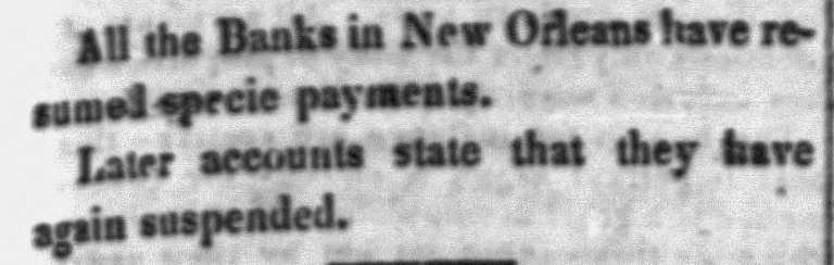 All the Banks in New Orleans have resumed specie payments. Later accounts state that they have again suspended.