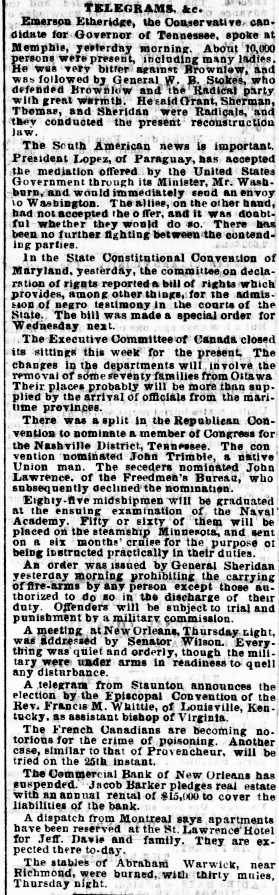 -Gen. Sickles will appoint colored men as registers in South Carolina.