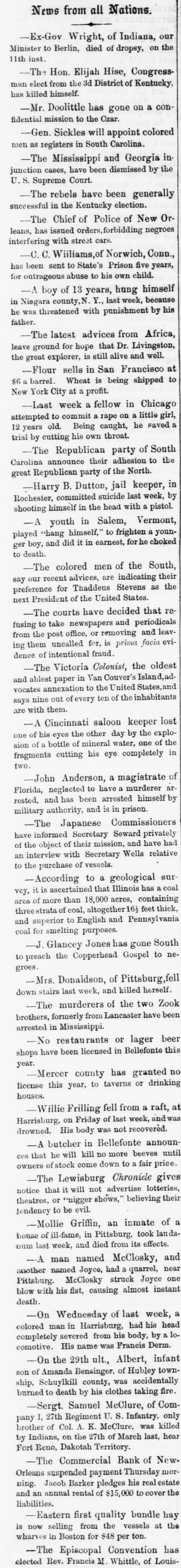 -The latest advices from Africa, leave ground for hope that Dr. Livingston, the great explorer, is still alive and well.