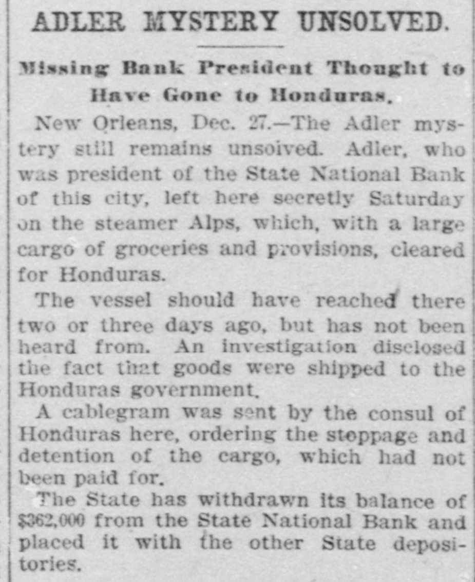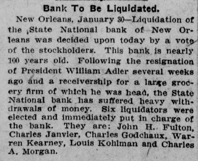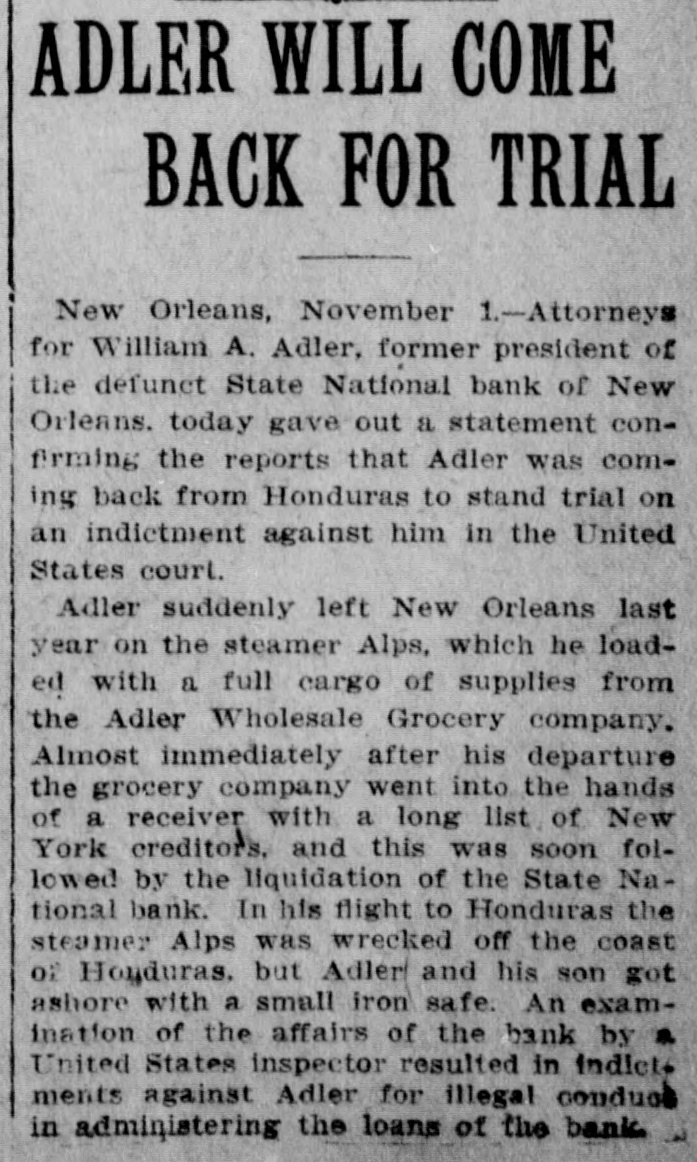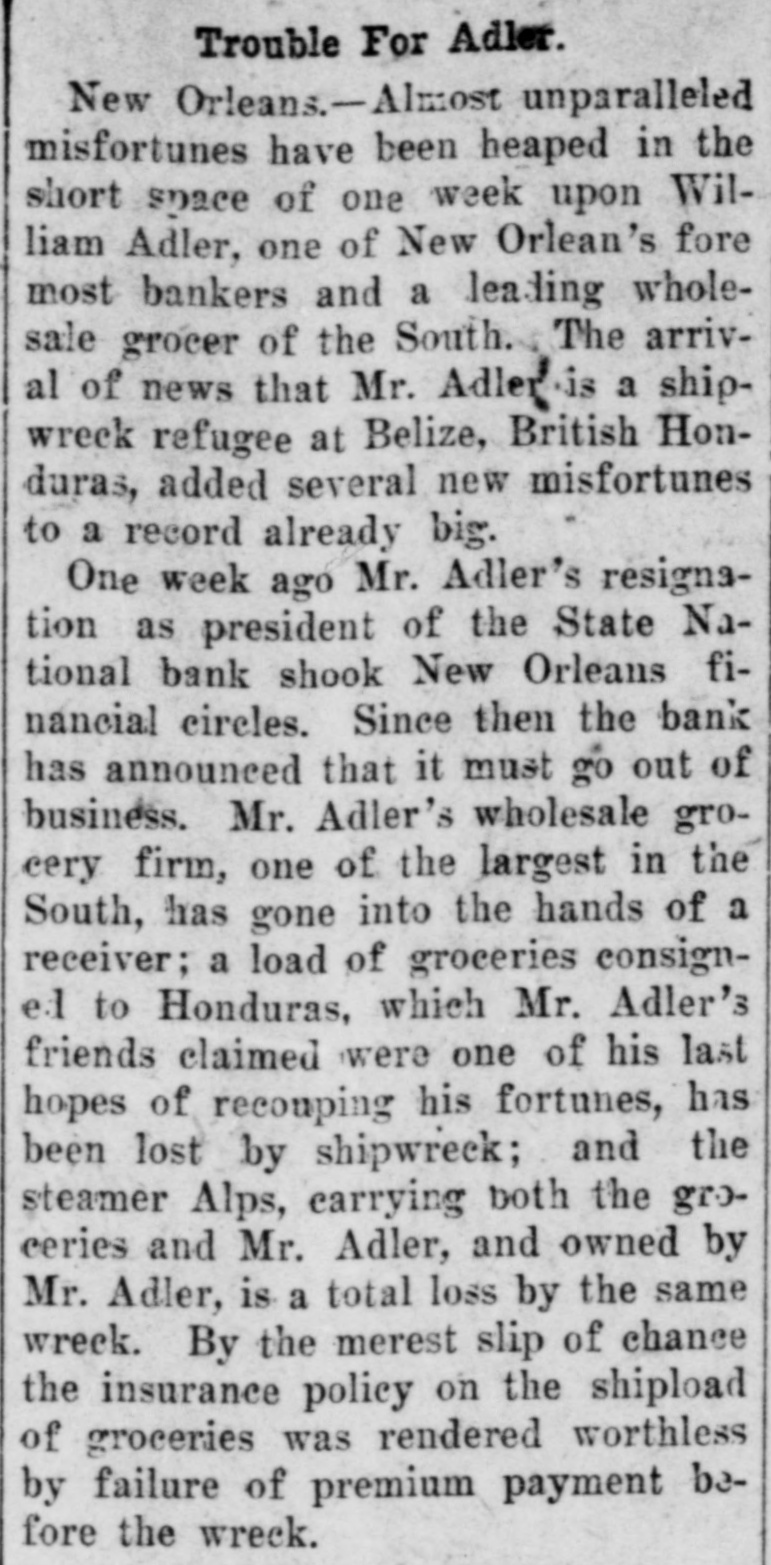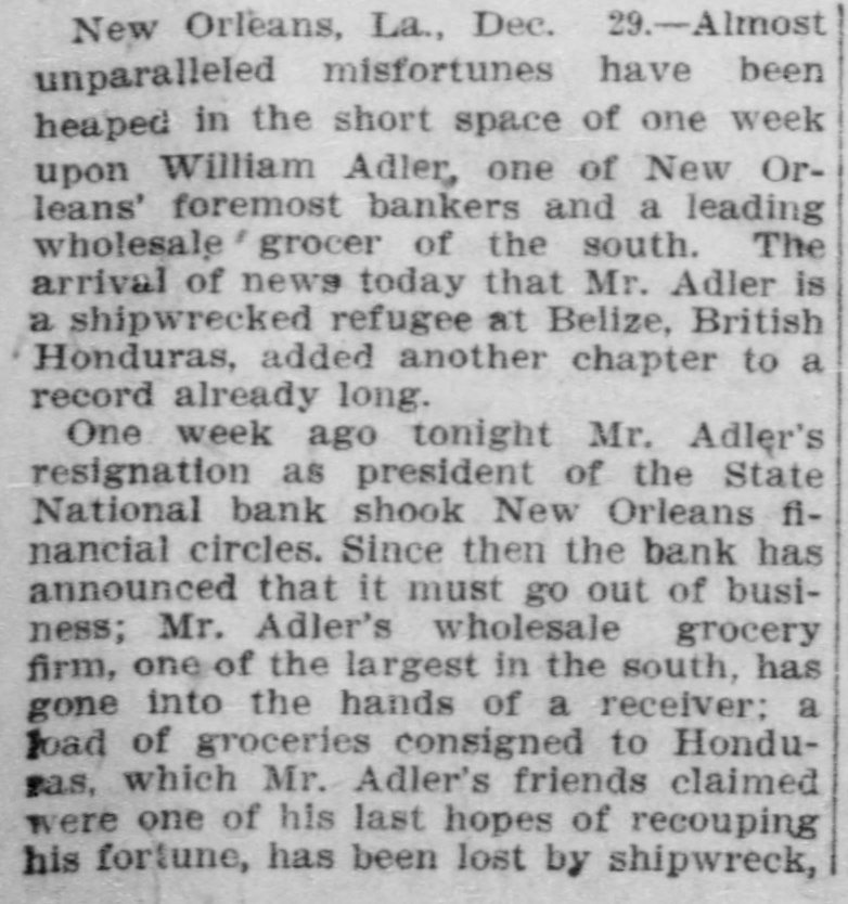 prominent in business and philan thropy, died in Denver, aged 87 years. one man was killed and five injured in Los Angeles, Cal., when a train struck a, street car. Rescued from their vessel after she had become disabled in midocean, carried to Genoa and thence to London, Capt. Kelly and the five members of the crew of the brigantine Aquila arrived at Halifax, N. S., on the Allan line steamer Sardinian. That no necessity exists for a reduction in the prices of iron and steel and that none will be made was the general understanding arrived at by representative manufacturers of pig iron, iron and steel at a meeting held in New York. Dr. Leander Starr Jameson, premier and secretary for native affairs of Cape Colony, has resigned. He assumed these offices in February, 1904. Fire wiped out the village of Twin Lakes. Minn., over 200 persons being made homeless. After a struggle of five hours against cold and a turbulent sea, the life savers of the Coslata station, near Nantucket, rescued the crew of the Newport brigantine Fredericka Schepp, which was wrecked on the north side of Coatue beach. The flag of the American man-ofwar Chesapeake and the "Balaclava bugle," two of the most valuable war relics of a collection of antiquities that belonged to the late T. G. Middlebrook, were secured at the auction sale of the collection in London for American buyers. A proposal for state-wide liquor prohibition was rejected in the Michigan constitutional convention by a vote of 55 to 39. In a dispute over a horse, Philip Kastner. aged 62, shot and fatally wounded his son George, aged 32, at Jasper, Ind. The office of the superintendent of poor at West Seneca, N. Y., was besieged by 500 men begging for food. Four men were taken to the county hospital suffering from starvation. The lower house of the Oklahoma legislature passed a measure prohibiting the smoking of cigarettes in the state. William S. Wood of the firm of Lloyd & Wood, one of the best-known lawyers on the Pacific coast, died at his home in San Francisco. Nine miners were killed by an explosion in the New Rivery colliery near Hawk's Nest, W. Va. Because he was angry with his wife, William Meutsch of Chicago killed one of his children and fatally shot the two others. Col. Burr Robbins, the old-time circus man, died in Chicago. King's court, one of the show places of Lakewood, N. J., a residence built some years ago by George Gould for his son, Kingdon, was destroyed by fire. The building was valued at $500,000. Liquidation of the State National bank of New Orleans was decided upon by a vote of the stockholders. This bank is nearly 100 years old. The superior court at Paris refused to grant an absolute divorce to Maud Gonne from her husband, Maj. McBride. The schooner Helen E. Taft of Thomaston, Me., was run down and sunk by an unknown steamer 16 miles southwest of Cape Lookout lightship off the coast of North Carolina. Pearl Harper was acquitted at Cadillac, Mich., on the charge of murdering her stepfather. Arthur W. Fergusson, secretary of the Philippine commission, died suddenly of heart disease in Manila. The Diamond Window Glass factory at Gas City, Ind., was destroyed by fire, resulting in a loss estimated at $100,000. The American torpedo boat flotilla sailed from Buenos Ayres for Punta Arenas. Dr. J. C. Brigham perished in a fire that destroyed eight stores and residences in Girard, Ga. E. G. Anderson, alderman. coal dealer and prominent citizen of Aberdeen, S. D., was arrested charged with being a receiver of stolen coal. Two financial institutions of New York city, one a national and the other a state bank, closed their doors The New Amsterdam National bank, capital $1,000,000, was taken in charge by the representative of the comptroller of the currency, and the Mechanics' and Traders' bank, a state institution, capital $2,000,000, announced the decision of the directors not to open. Both banks announced their ability to pay all depositors. The $100,000 estate of Capt. Hooker of Rochester, N. Y., who left a will bequeathing his property to Galesburg, III., will be distributed, the surrogate having denied probate to the will on the ground that Capt. Hooker was mentally incompetent. Peter F. Clark of Girard, III., pleaded guilty to the charge of murdering Mrs. Ollie Gibson on a trolley car near Virden March 25, 1907, and was sentenced to serve 40 years in the penitentiary. In Lublin, Russian Poland, the police unearthed a band of robbers composed entirely of women and the leaders have been taken into custody. The Coburn warehouses in Indianap olis were burned, the loss being