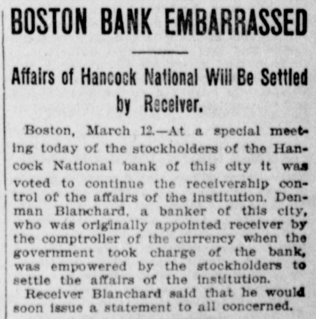 STILL FAILING. Prosperity Seems to Have no Effect on HardPressed Banks. NEW YORK, N. Y., May, 21. The Third national bank of this city announced, this morning, that it will go into liquidation. It has $12,000.00 of deposits and claims solitiney. It will turn over its affairs Horow City bank, which will pay deposi our The City bank has $43,000,000 in assets. LAWRENCE, N. H., May 21.-The Lake village bank follows the Belknap savings bank and suspends. WASHINGTON, D. C., May 21.The failure of the State national bank of Logansport, Indiana, yesterday, was due to the management's loaning heavily to its president. BOSTON, Mass., May 21. -The Han. cock national bank goes into líquidation, to-day, and the Mercantile trust company takes charge of its affairs. WASHINGTON, D. C.,May 21.-Act. ing comptroller of the treasury, Coffin, was notified, this morning, that the First national bank of Orleans, Nebraska, had failed.