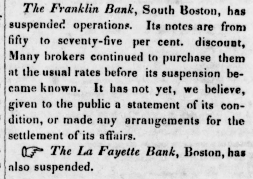 though the bank writer seems to be imprfectly acquainted with grammar. What was the design of the call on the part of the Senate, I have yet to learn, unless it was done to prejudice the minds of Congress against banks. Both houses have been exceedingly dull today. In one house, the Army Appropriation Bill, and in the HORACE. other, the Camberland Road. BOSTON, March 30, 1838. MR. BENNETT-We have little or no news in this region-still less business. Importing and jobbing, and, in fact, business of all kinds, seems to have paused in its operations. The banks are hauling in, and the merchants are obliged to pay the last dollar to cancel their liabilities. The associated banks here are determined to meet the Gothanites face to face; so that, whatever may be the determination on their part, they will agree upon, and act in concert. The managers of our banks have had some important private meetings, and from what can be learned out of doers, they intend to curtail and then resume, whether they have company or notin order, if possible, to re-establish the credit of the Boston banks. The Market Bank has published a statement, which is not very satisfactory to the public. That it is in difficulty, few question; and that it has been seriously run upon, is noterious. However, the report made by interested persons, is worth as much as any fairstory which was ever made by individuals who have property at stake. The banks here have fallen from an eminence which was once indeed a credit to Boston, but from which she will never recover. For instance, the exploded banks: American Bank will pay her bills in full. Commonwealth Bank (president deceased-cashier and some of the directors in pecuniary difficulties,) will pay about 40 per cent. Commercial Bank (president gone to Canada with $19,000 in gold,) will pay her bills probably in full. Their funds are loaned to a few individuals, which, if paid, will be favorable to the stockholders. Franklin Bank (president, cashier and directors, indicted, and are to he tried for mismanagement; president Dunham says he can't read or write so how,) will pay probably 15 cents. Fulton Bank (some of its officers are laboring under the pressure of the times.) will pay from 80 to 90 per cent. Kilby Bank (some of its officers have known what it is to be in hot water-funds of the institution distributed among the directors,) will pay not far from 90 cents. Lafayette Bank (the past and present presidents, with the directors, are indicted for mismanagement, and will have their trial in a few days one of their directors has just had his trial for stealing $10,000 of Lafayette bills, and has been acquitted; the bank has been miserably managed,) will pay possibly, 7 per cent. The banks to be wound up are the Washington Bank, Hancock Bank, and Oriental Bank; and many more, doubtless, will think it expedient to surrender, and die an honorable death rather than to linger on, and after all, be compelled to give up the ghost, in deep disgrace. Many failures have not taken place here within a short period, though in all probability they will occur in afew weeks to an alarming extent. Yet, indeed, the plan of mertgaging property is here all the go! The city clerk, with hisassistants, find but little leisure, while the lawyers are cudgelling their brains in devising howtheir clients can get out of a bad scrape, and not suspend payments. The mortgages of one large house which failed a short time since, covered one hundred and fifty pages. So, thus they contrive and plan. Many respectable houses, who are now in good standing, have get their stocks mortgaged The Misses Grimke are here and lecturing at the Odeon to crowded houses. Great anxiety is manifested to hear them. They are listened to with profound respect and attention. Abolition is making great headway in this State. I assure you, you might as well talk about putting spurs to the lightning, as even to (attempt to drive the thing faster, or to make Abolitionists more rapidly than they are ROW increasing in the East. The C. H. Lord prosper the cause of the just.