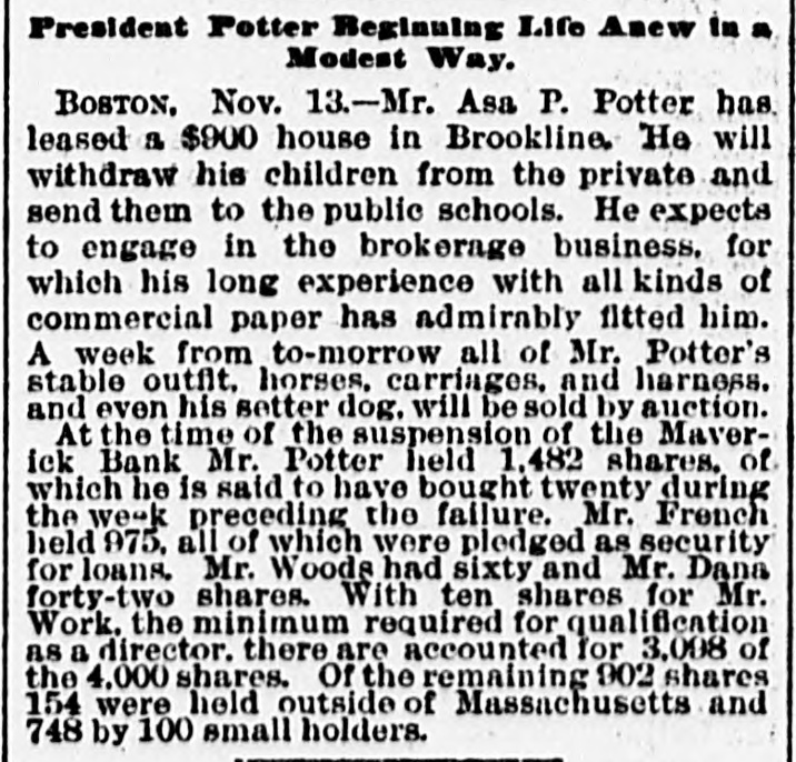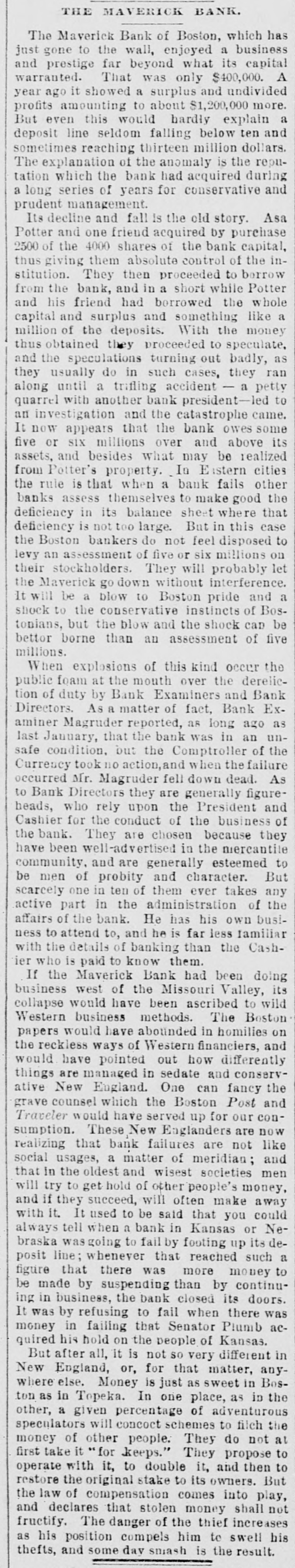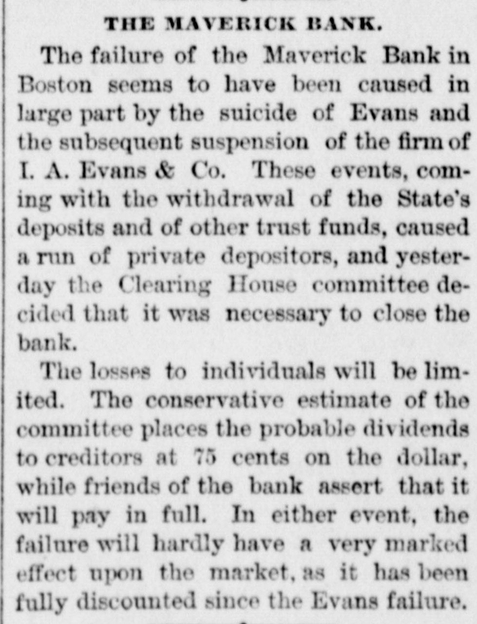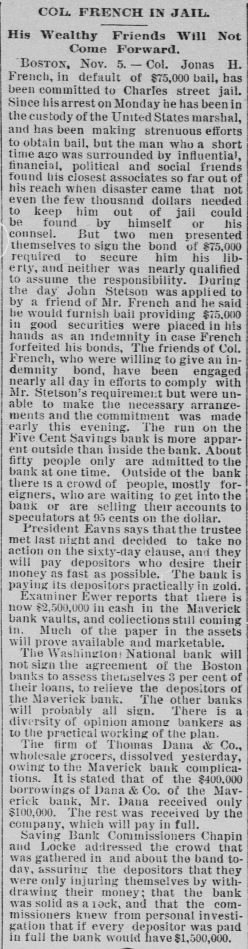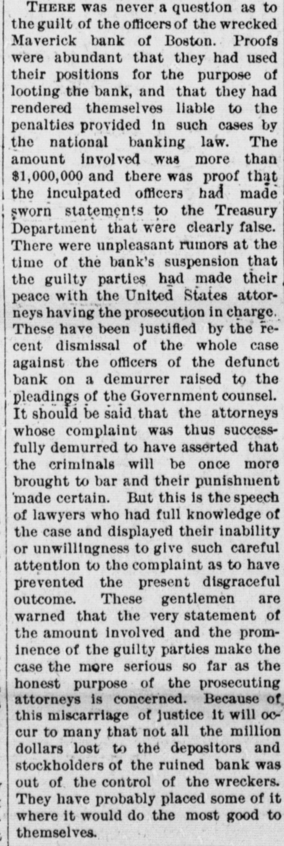 THE 551 claims proved at the Maverick bank, Boston, aggregate about $1,800,000. The receiver has deposited with the United States sub-treasury $90,000, making a total of $2,300,000 now standing to the credit of the bank's creditors.